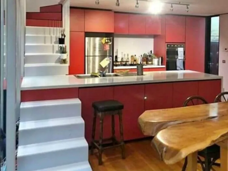 Ever dreamed of dancing on your dinner? Well, someone’s wild fantasy came to life with this stair-kitchen combo! A masterpiece of design where culinary arts meet an obstacle course. It’s a quirky setup that screams, “Why choose between a kitchen and a staircase when you can have both?”