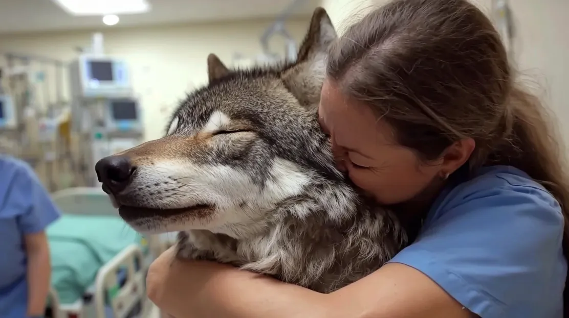 As the wolf’s agitation grew, Katie realized they couldn’t wait any longer. The police arrived, but rather than escalating the situation, the wolf seemed to calm down, almost as if it recognized they were trying to help. Then, unexpectedly, the wolf turned and walked toward the hospital exit, as if beckoning Katie to follow. Without fully understanding why, Katie decided to trust the wolf, stepping outside into the night.
