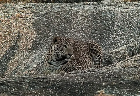 There’s a leopard hidden somewhere in this picture, but finding it is no easy feat! Its incredible camouflage makes it blend perfectly with the rocky background, so much so that we had to look multiple times before finally spotting it. Do you think you’ve got sharp enough eyes to find it on your first try?
