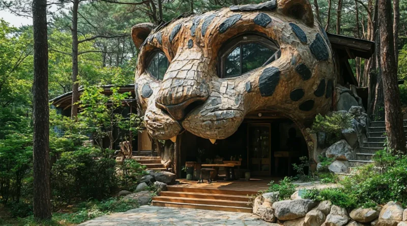 Deep in the forests of South Korea lies an architectural marvel that seamlessly blends whimsy with the natural environment: the Tiger Forest Home. Designed to capture the essence of Korea’s reverence for nature and its cultural symbolism, this extraordinary residence stands as both a tribute to the tiger’s significance in Korean folklore and a masterpiece of craftsmanship.