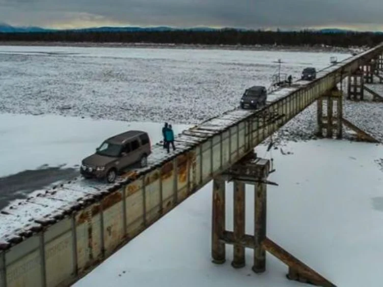 For decades, this bridge has stood as a silent witness to the extremes of human endeavor and nature’s unforgiving wrath. Left untouched by repairs for over thirty years, every journey across feels like a gamble with fate. With no railings, a path so narrow it barely fits a car, and ice-covered wooden planks, there’s no room for mistakes on this bridge.