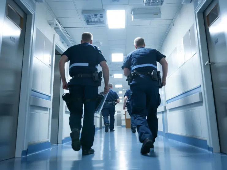 As soon as the wolf was spotted, hospital security jumped into action, calling for an evacuation right away. “Everyone, please proceed to the nearest exit calmly!” they shouted, their voices firm yet reassuring, cutting through the air. They moved quickly, guiding the bewildered crowd, making it clear they were leaving nothing to chance with a wild wolf on the loose inside the building. “Stay together and follow me!” they directed, ensuring no one was left behind in the scramble to safety.