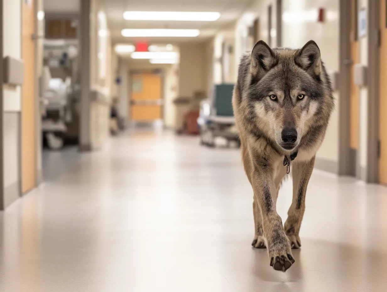 In the quiet hours of the night, when the hospital was lulled into a deceptive calm, something shocking shattered the peace. A wild wolf burst through the front doors, causing an immediate stir. The once peaceful hallways, filled with quiet talks and the steady beeping of medical equipment, suddenly buzzed with fear and confusion. Staff and patients alike couldn’t believe their eyes as the wolf’s entrance turned the familiar, comforting environment into a scene of chaos.