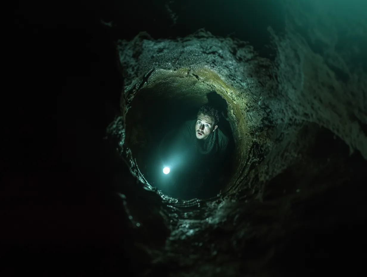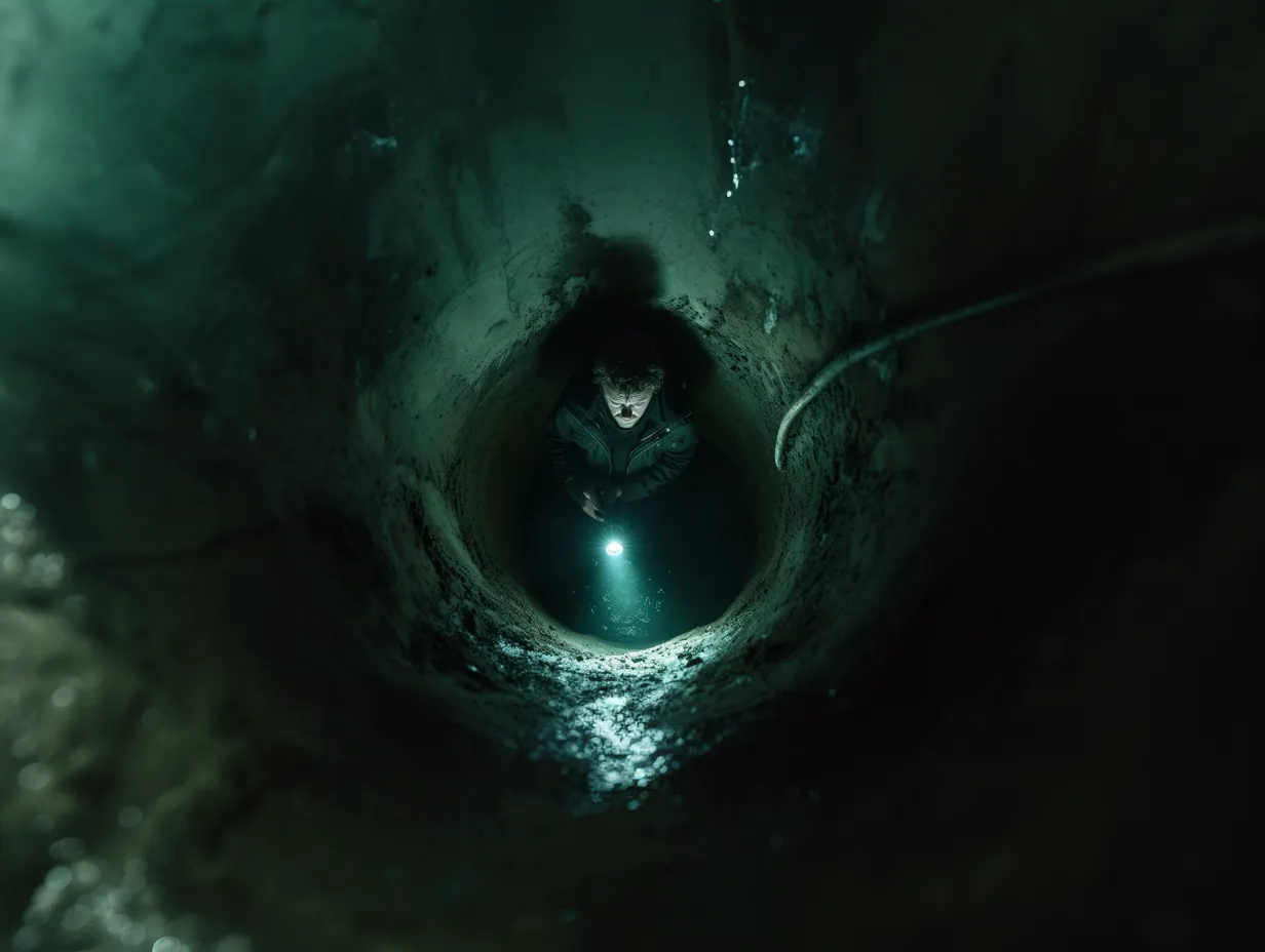 In a panic, Peter’s hands shook as he pulled out his phone, desperately trying to turn on the flashlight. The darkness around him was thick, pressing in from all sides. With a click, a beam of light sliced through the black, revealing the deep, hidden spaces of the well below him.