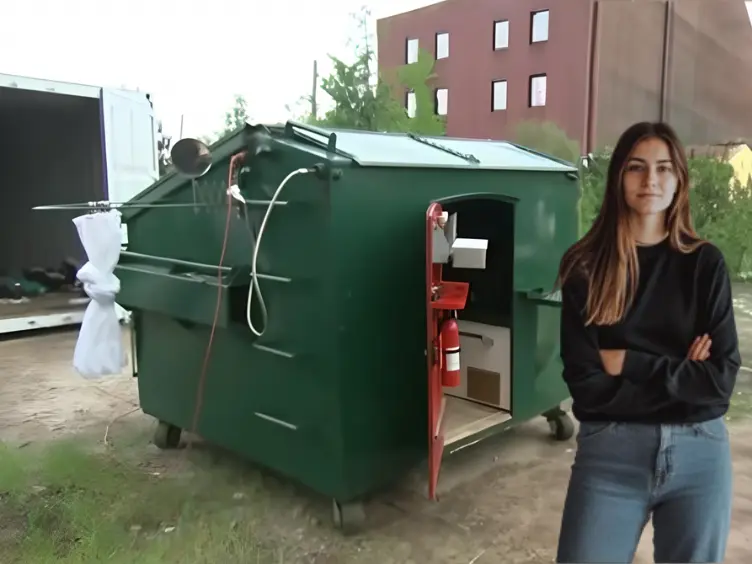 Imagine walking down a busy street and stumbling upon what appears to be just another regular dumpster. Yet, this is no ordinary dumpster filled with garbage. Inside lies an incredibly designed tiny home. Thanks to the creativity of an inventive young woman, this once ordinary dumpster has been turned into a warm and inviting living space, offering a new perspective on what city living can be like.