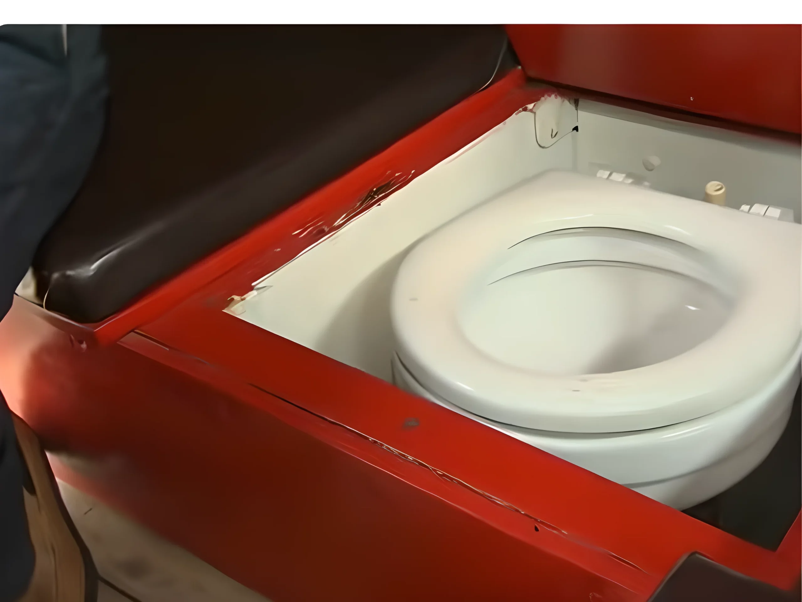 Tucked under a cushion lies a toilet with a nautical twist, originally from a boat. Its smart design allows it to drop down six inches, ready for hookup to a septic system, ensuring that this tiny haven doesn’t skimp on modern comforts.