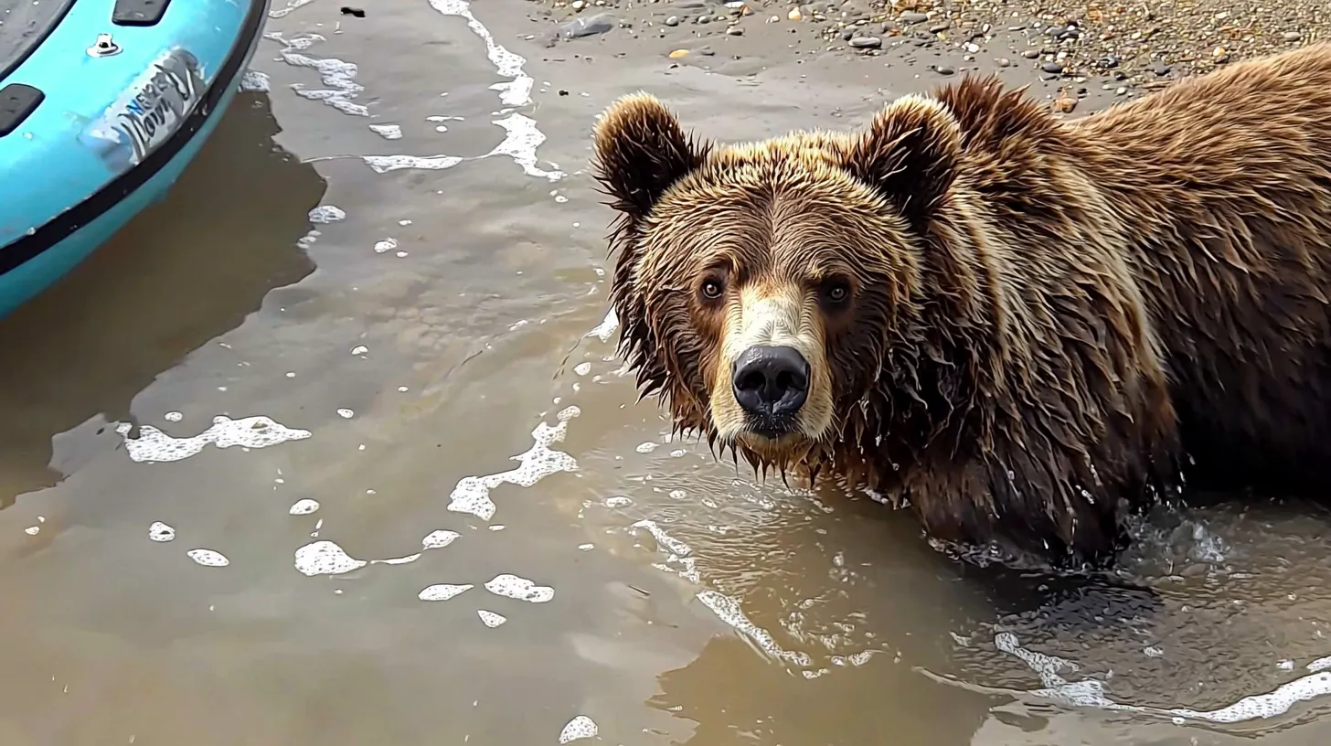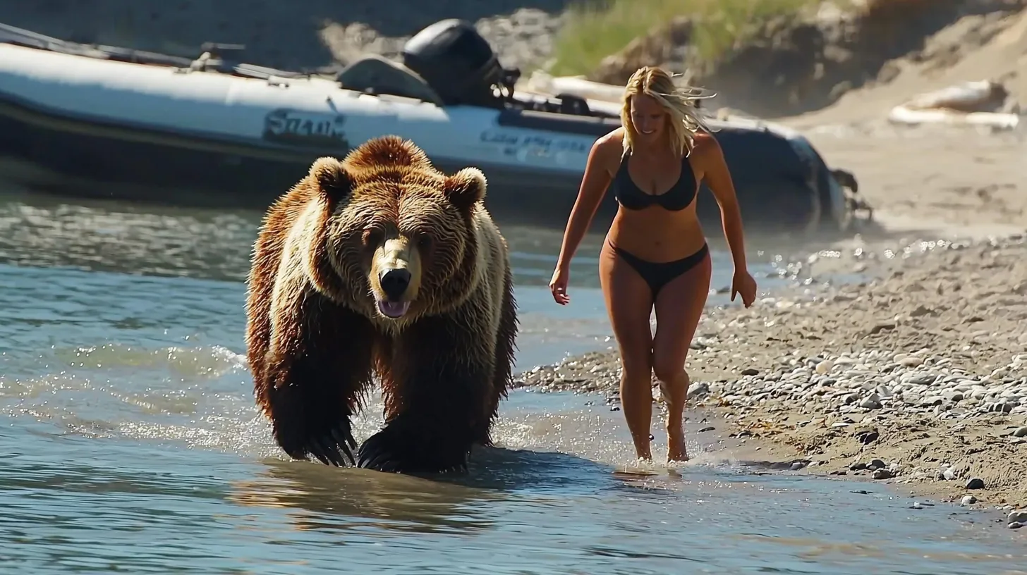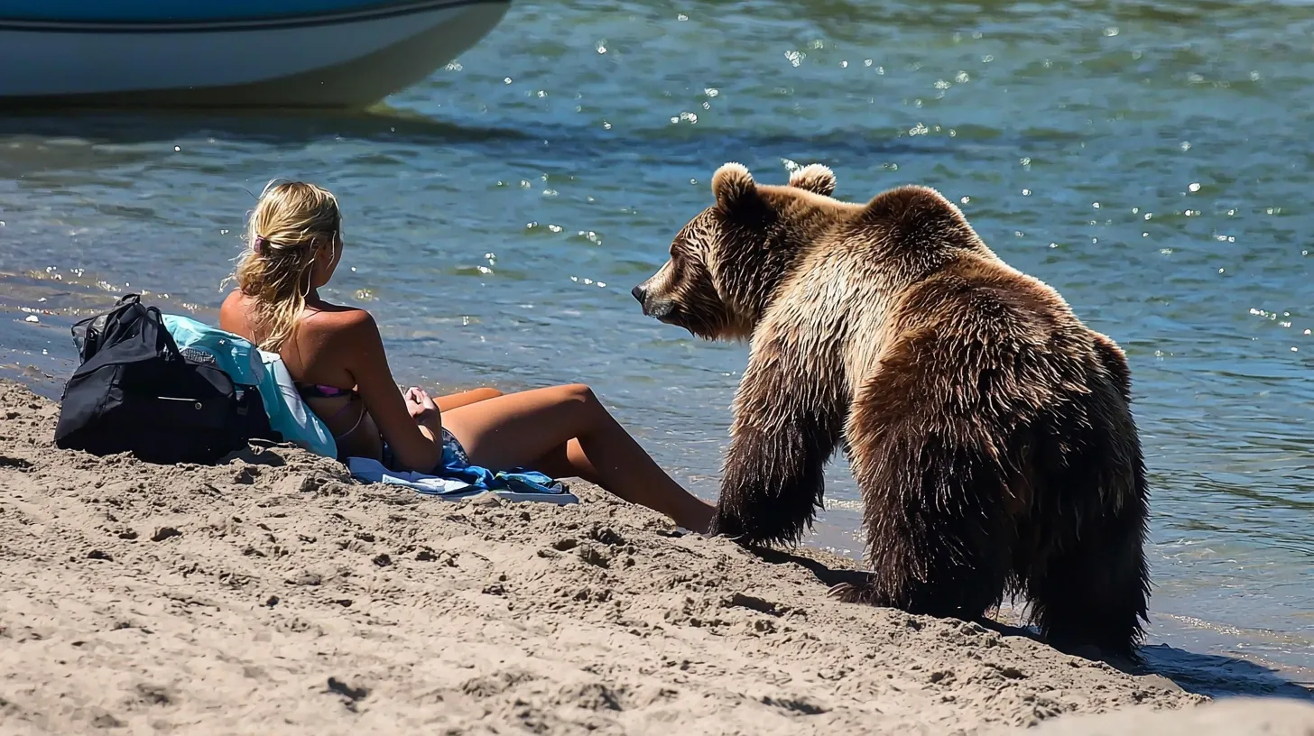 Just as she was about to close her eyes, something near the water’s edge caught her attention. At first, she thought it was a large dog emerging from the waves. But as it came closer, she gasped. It was a massive bear, its fur dripping wet, shaking off water like a dog after a swim. The sight was both mesmerizing and terrifying.