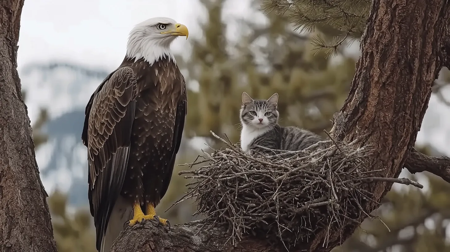 In the end, the neighborhood had witnessed something truly extraordinary—an animal bond so strong that it defied all expectations. The story of the cat and the eagle would become a local legend, something that would be passed down for years to come.