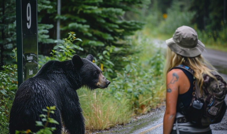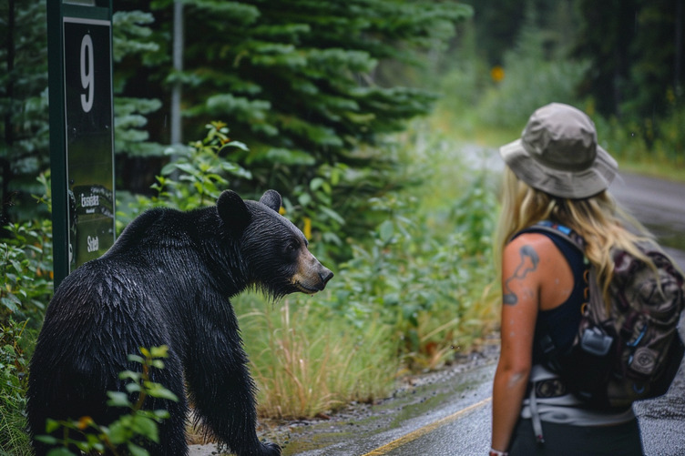 Woman Follows Bear into the Forest After It Unexpectedly Approaches Her at Bus Stop