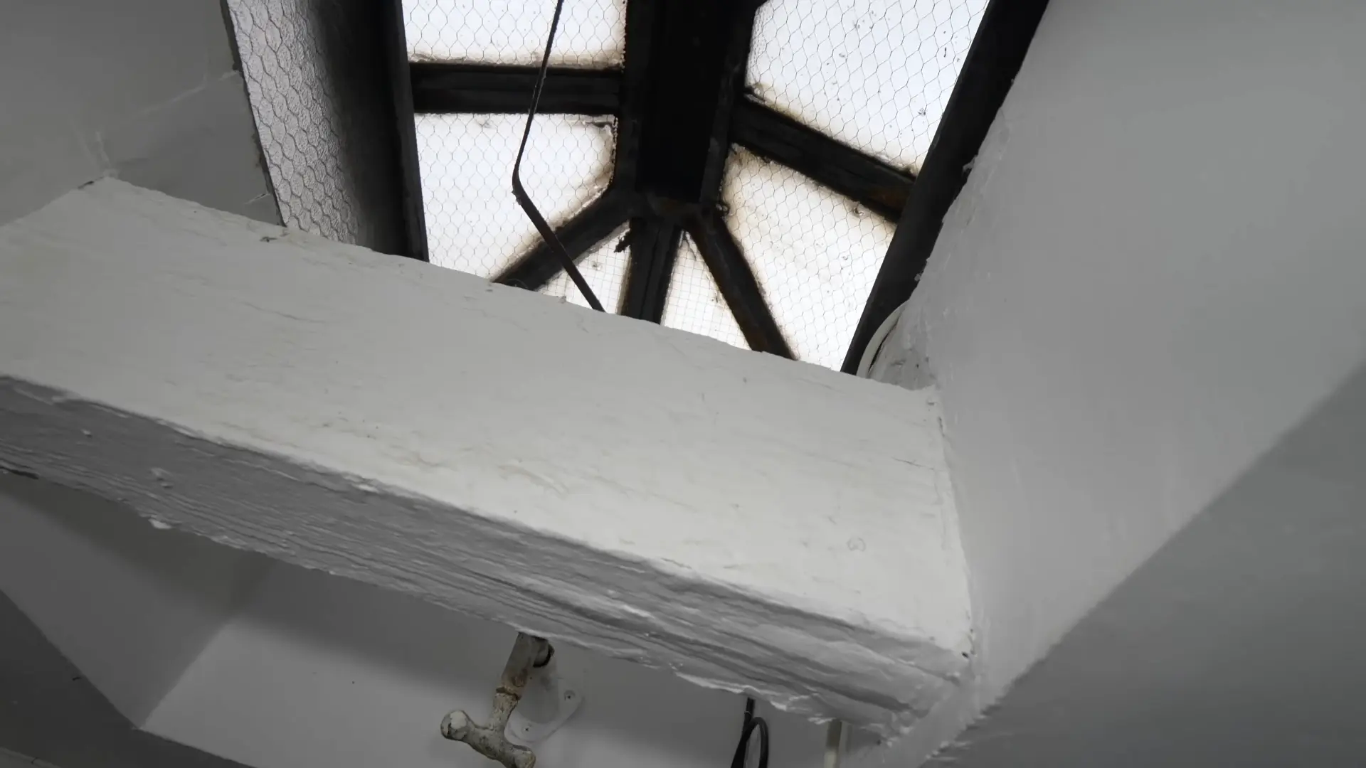 There are no windows, except for this little roof hatch, to let some natural light in.