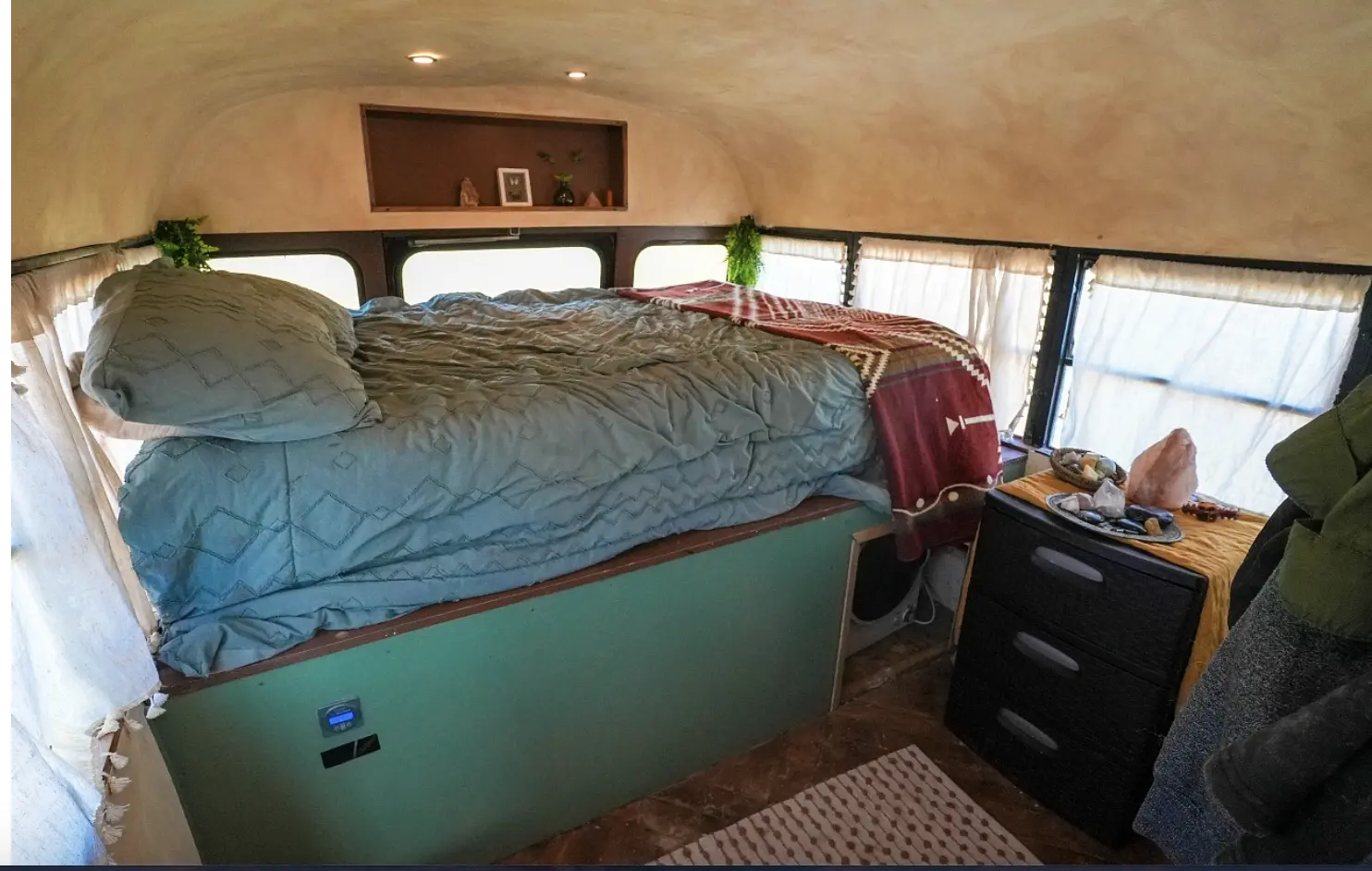 After two years of living in their converted bus, Felicia and Jake have created a home that beautifully reflects their love for one another and captures the spirit of adventure. Just imagine the joy of sinking into a cozy bed, surrounded by fond memories, after a day filled with exploration!
