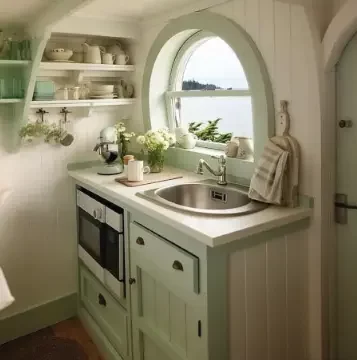 The building is of course small, and so everything inside has to be functional. Such as this tiny kitchen. Made from local wood by James’ nephew Mark. Its crowning jewel? The cute window looking out over the ocean. With views like this you’ll be wanting to cook every day of the week.