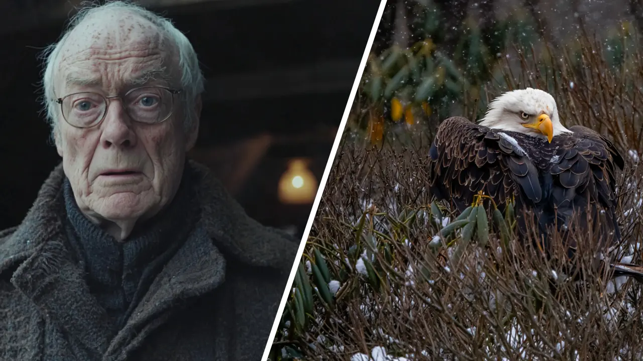 Imagine walking down a quiet street on a cold winter evening, when you suddenly spot a figure huddling under the bushes. At first glance, it looks like just another bird, maybe a large raven trying to survive the harsh weather. But as you draw closer, you realize this is no ordinary bird. It’s a bald eagle and it’s hiding something incredibly precious underneath its belly.