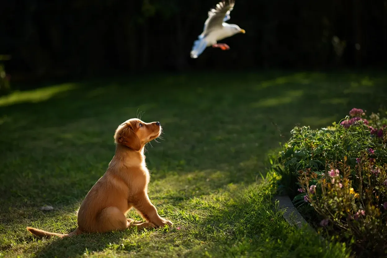 High above the rooftops, a large seagull swooped in a tight arc, its white wings flashing in the morning light. It circled once, then dove down into the garden of a small cottage near the dunes. In one swift motion, it grabbed a small golden puppy by its scruff and lifted off. Gasps echoed from the nearby yards. A few people shouted. But it was too late—the bird had vanished toward the coast.