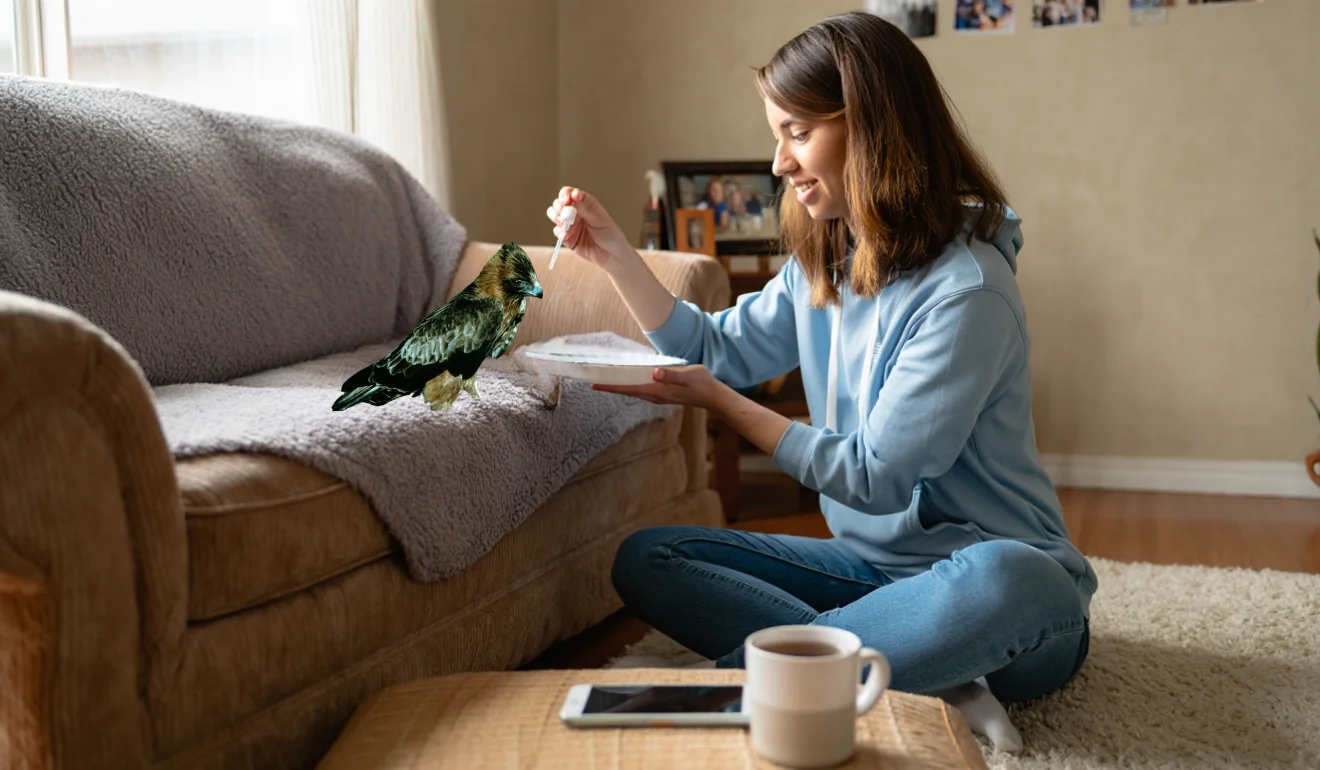 She brought it inside, offering it some water, and placed it on a soft blanket by the window. The eagle rested, its feathers shimmering with a mysterious iridescence.