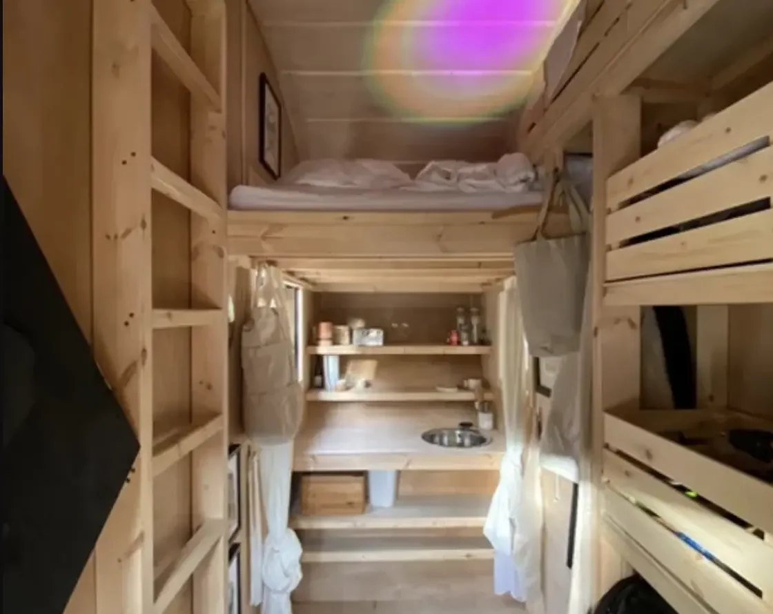 Imagine walking down a busy street and stumbling upon what appears to be just another regular dumpster. Yet, this is no ordinary dumpster filled with garbage. Inside lies an incredibly designed tiny home. Thanks to the creativity of an inventive young woman, this once ordinary dumpster has been turned into a warm and inviting living space, offering a new perspective on what city living can be like.