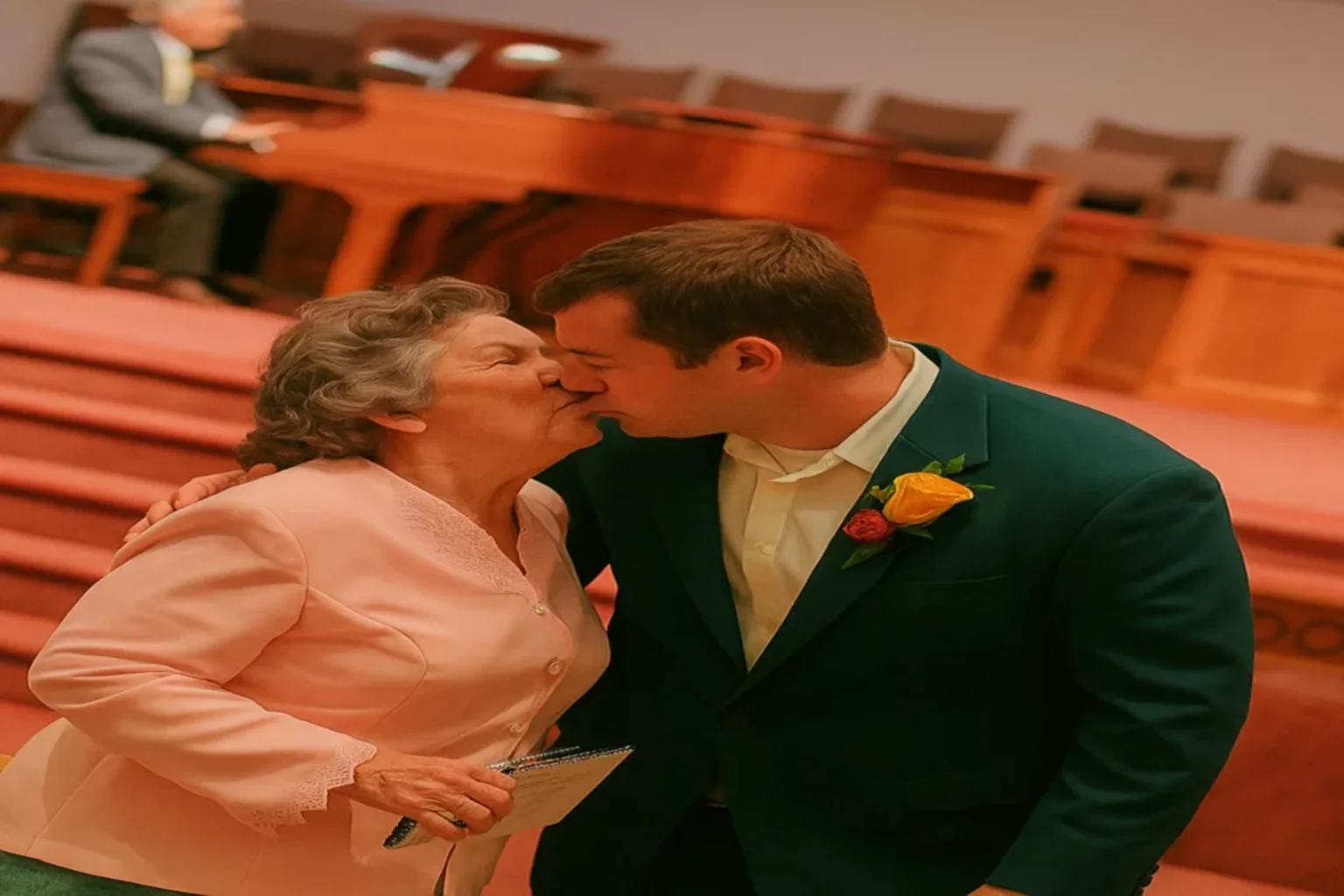 When my new husband leaned down to kiss my Grandma on the cheek, I think he got a little more than he bargained for!”