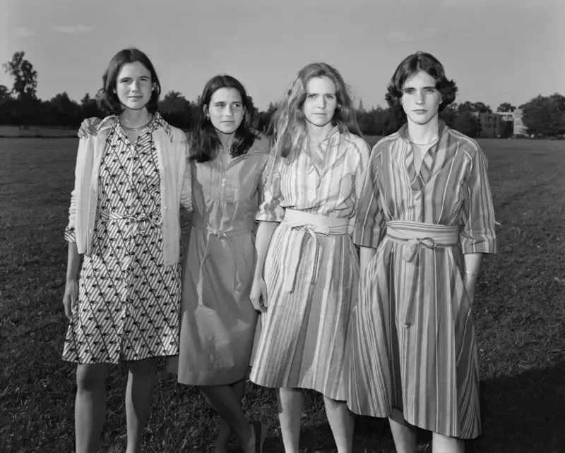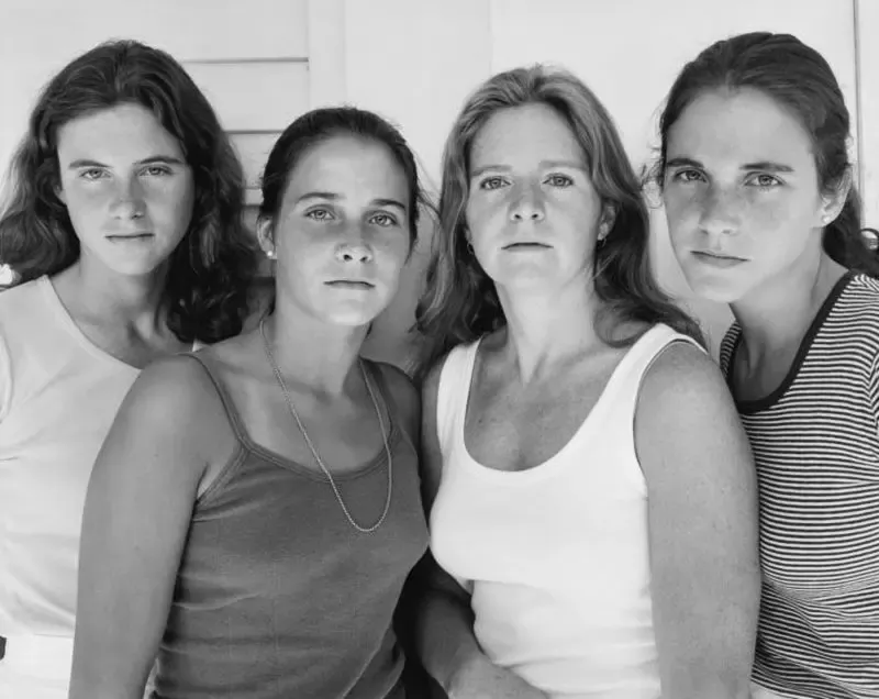 In the summer of 1975, photographer Nicholas Nixon was visiting his wife’s family when, on an impulse, he asked his wife and her three sisters if they would pose for a photograph. The result was a striking black-and-white image of the four women, linked by their elbows, standing against a soft backdrop of trees and lawn. Their relaxed posture and luminous appearance captured not just the simplicity of the moment, but also the quiet bond between them as sisters.