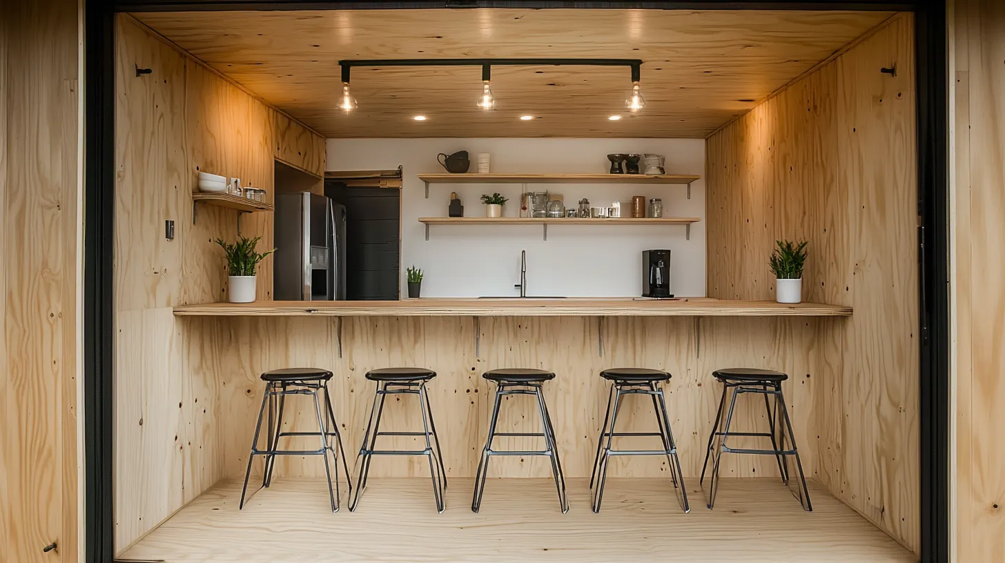 By adding a small extension to the old container, Sophia created a bright and spacious kitchen/dining area, as well as the entryway to the home.