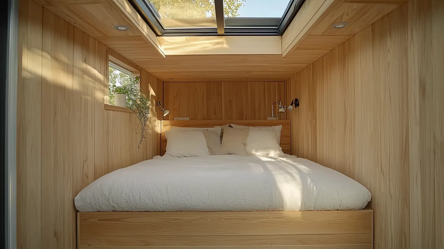 And if you’re wondering what that wooden module was all about, it actually houses the bedroom! With some natural lighting from two custom skylights.
