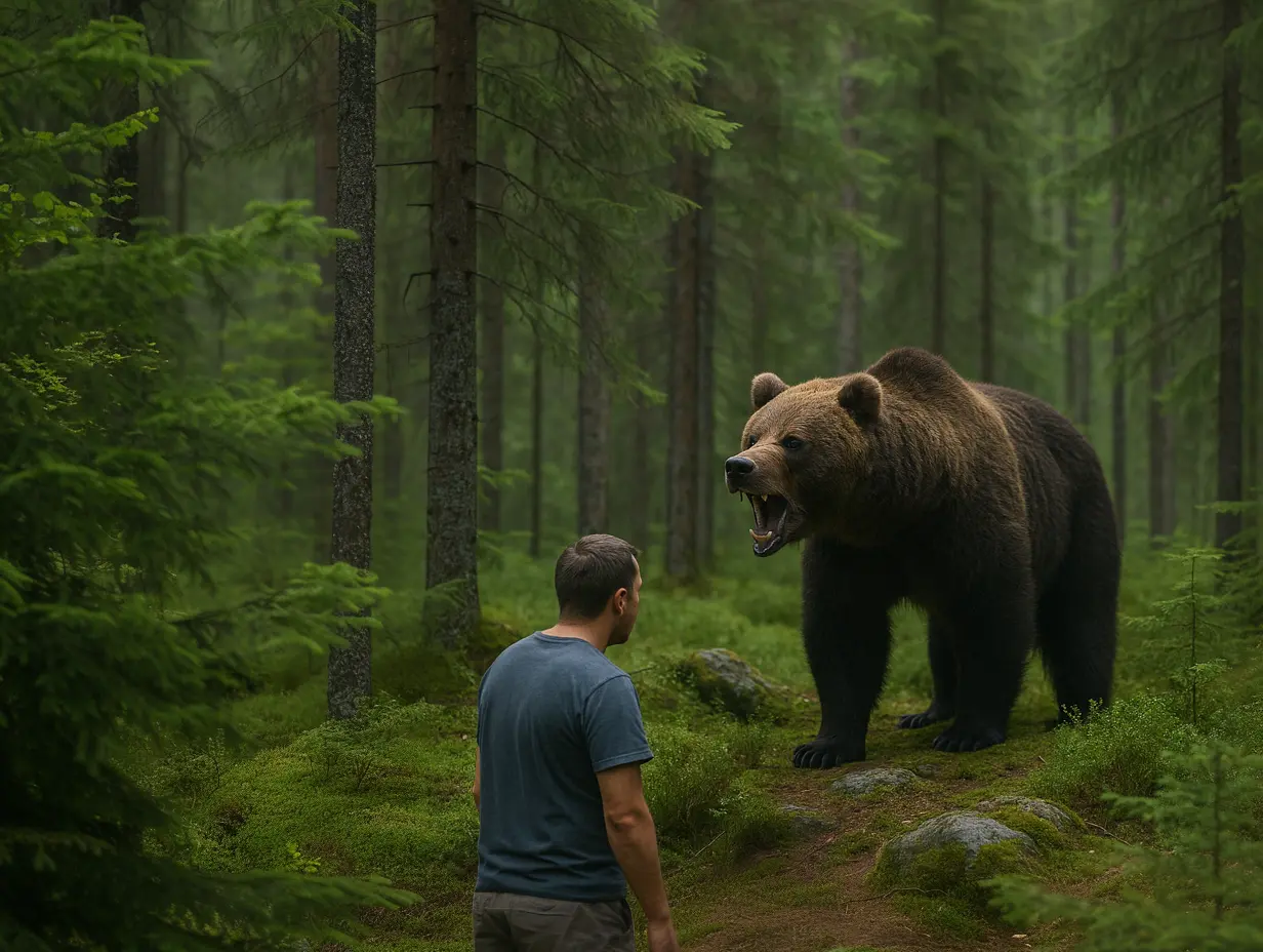 In the distance, he saw movement—a large shadow. It was a bear, massive and menacing, moving through the trees. And it was heading straight for him.