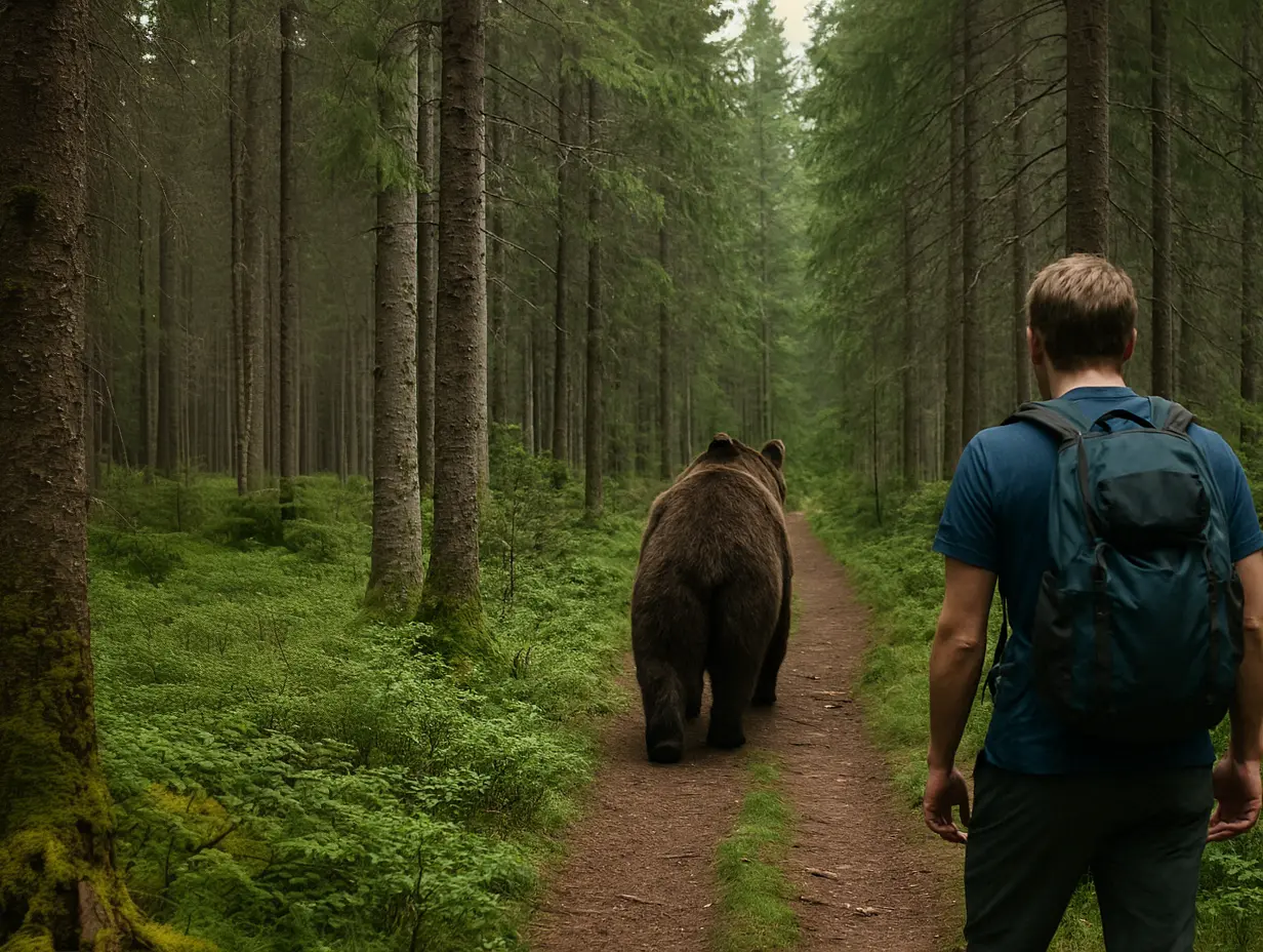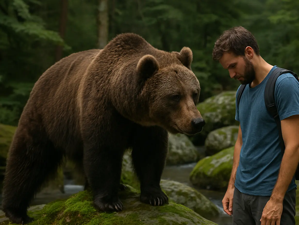 The journey felt endless. How much longer could he keep following this giant animal? But somehow, the bear seemed to know the way, weaving through the trees with a calm confidence that David couldn’t match. His legs were sore, his mind clouded by exhaustion, but he kept moving, trusting the bear’s lead.