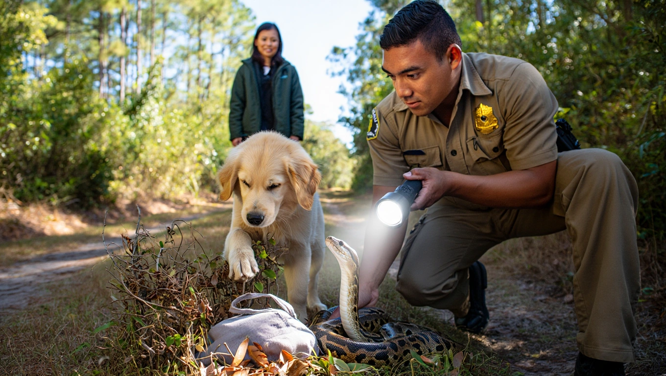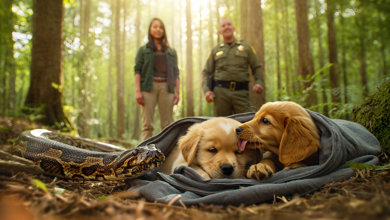 And the snake? Officials believe it was a pet python once kept illegally, abandoned in the woods… who’d taken on a bizarre protective instinct.