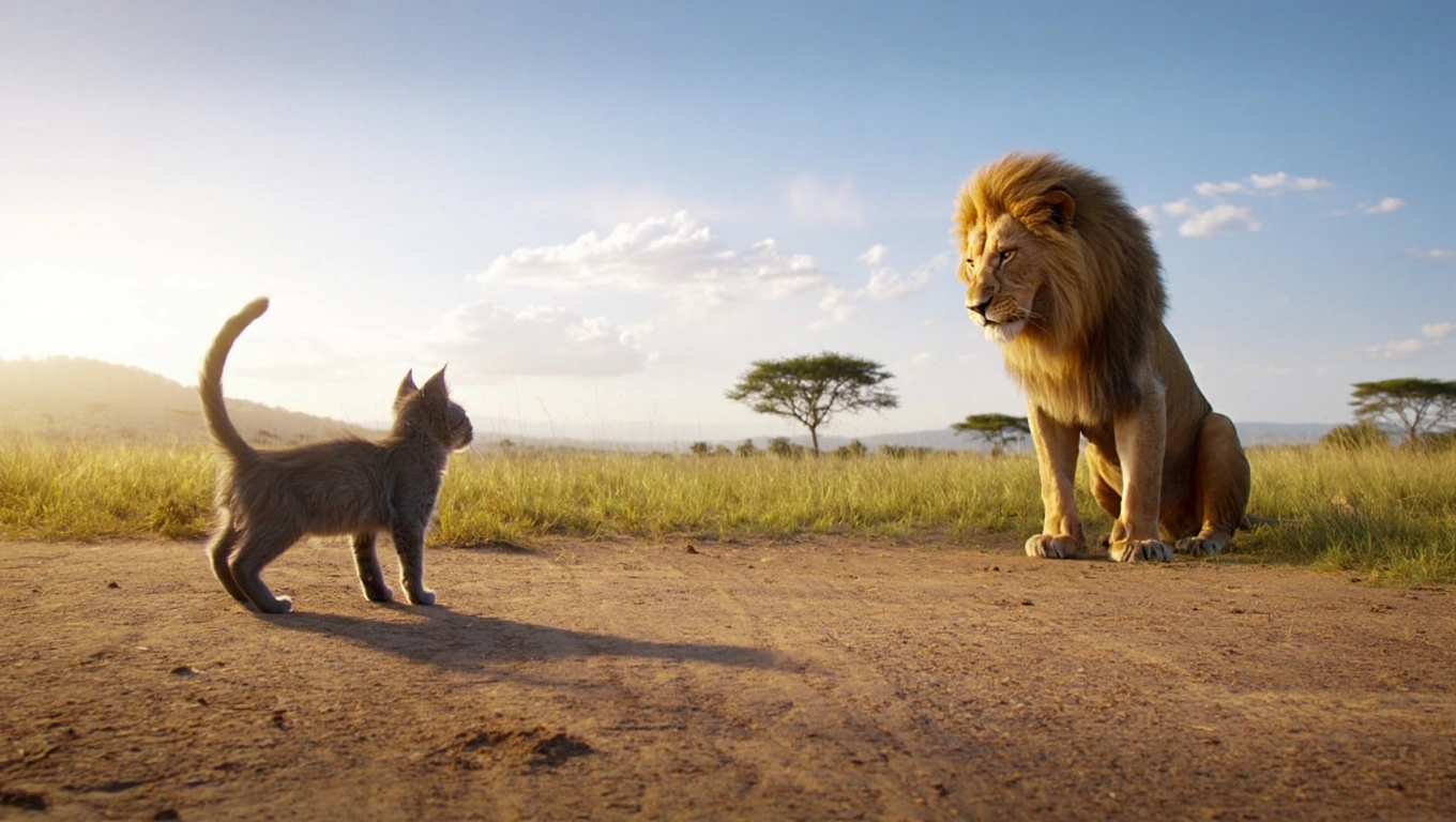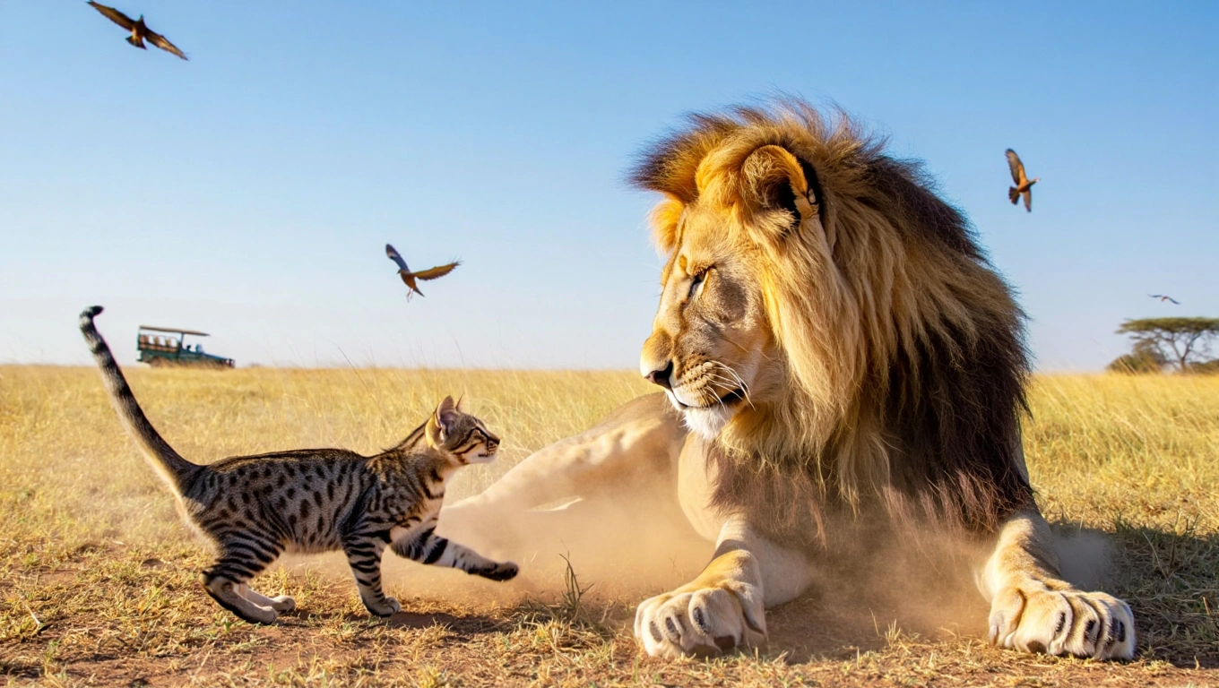 Cat Wanders into Savannah Alone – What the Lion Does Has Everyone Frozen