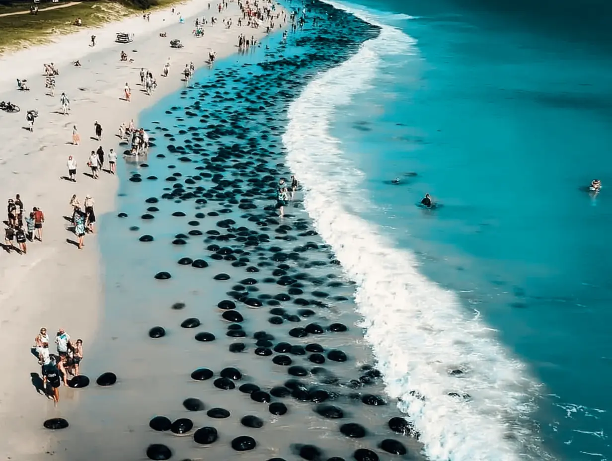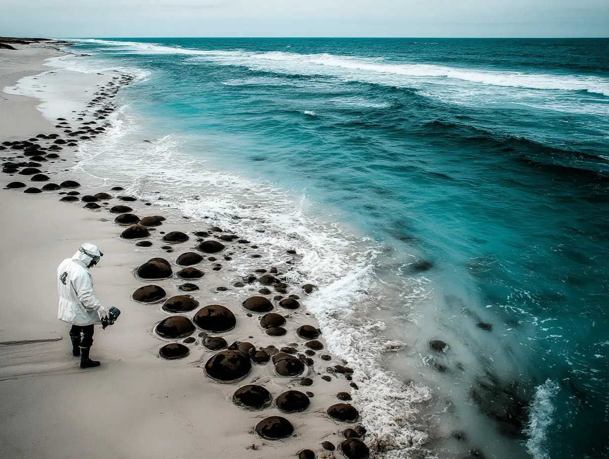 The beach was packed that day, with families lounging in the sun and kids running through the surf. The warm breeze carried the distant sound of laughter, but then, a strange noise cut through the air—something sharp, like a crack, followed by a dull thud. Some beachgoers turned, puzzled, as a cluster of large, smooth objects began to wash ashore, their sizes and shapes unlike anything anyone had seen before.