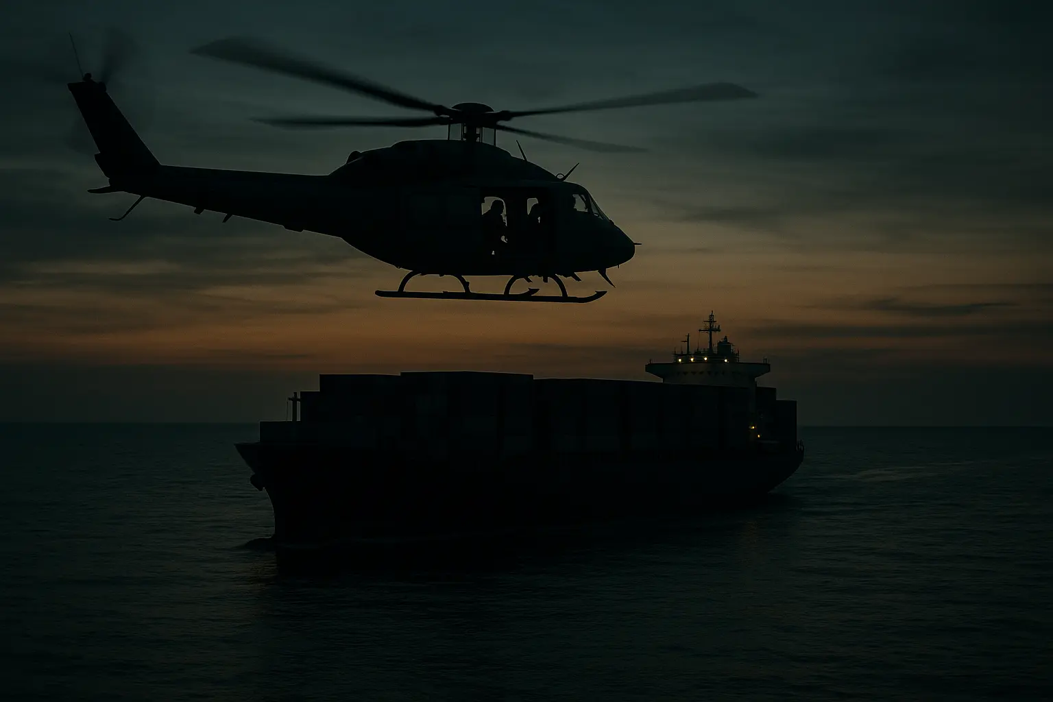 At around 4:40 PM, just as the sun dipped toward the horizon, a faint hum appeared in the distance. The crew assumed it was another cargo vessel. But it wasn’t on radar. Moments later, a black helicopter burst through the clouds, flying low and fast, headed straight for the container ship.