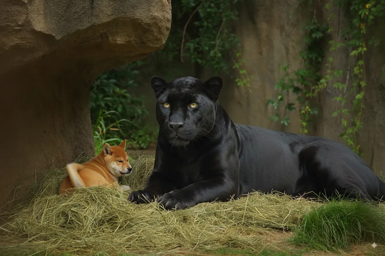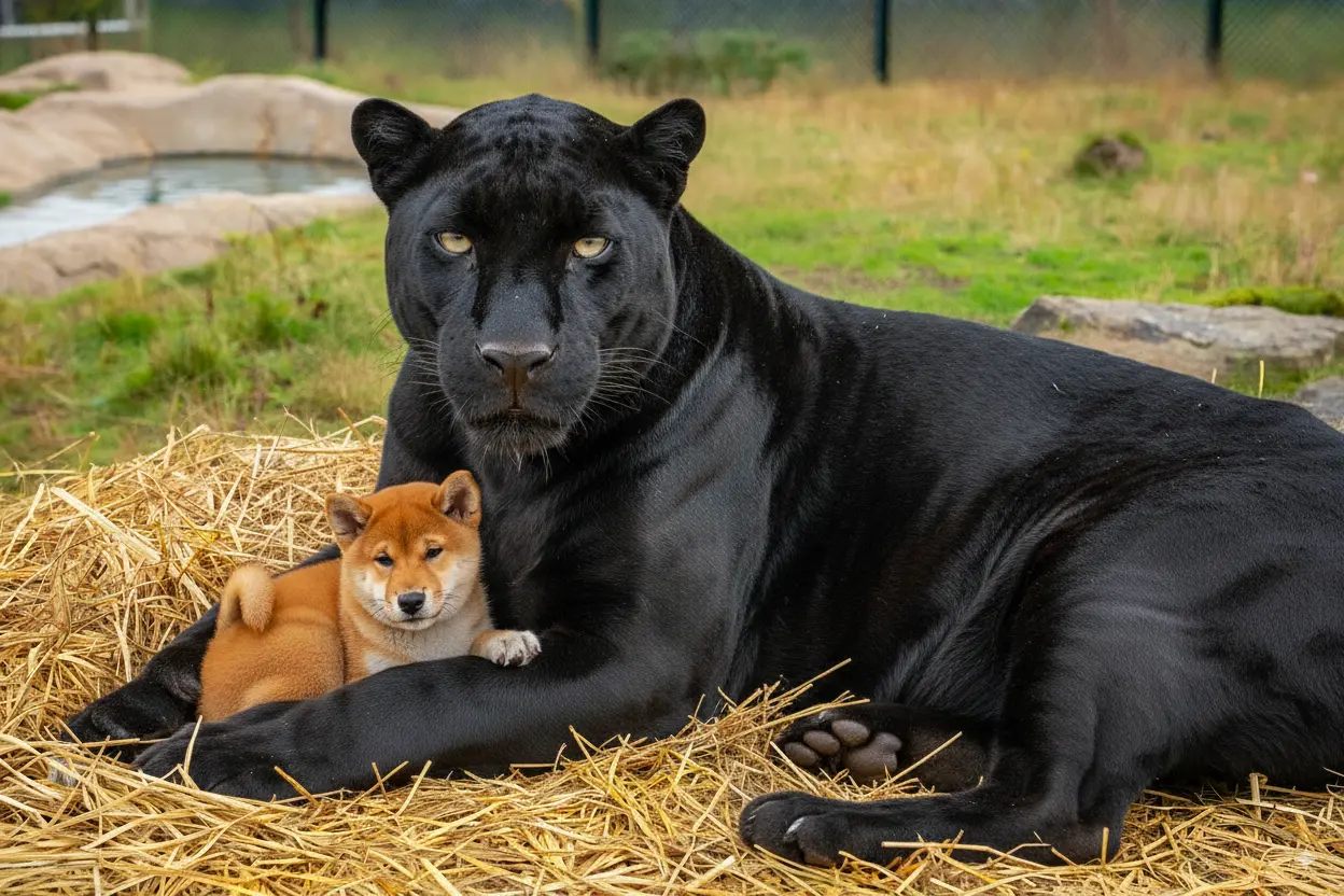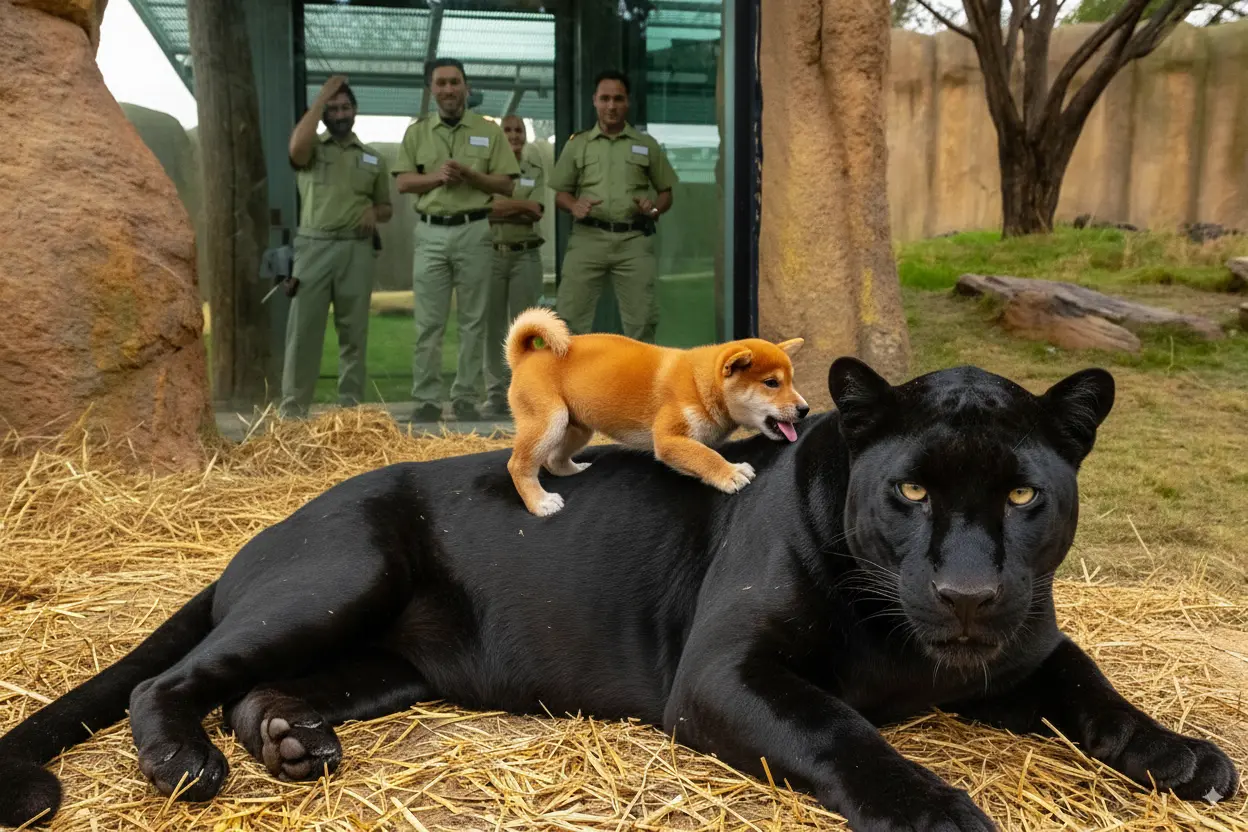 Instead of lunging, the panther slowly raised its head and locked eyes with the puppy. The little shiba inu wagged its tail and walked even closer, as if meeting a new friend. Zoo workers shouted and prepared to tranquilize the panther.