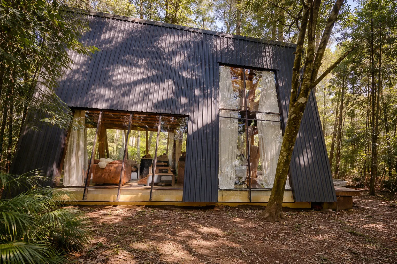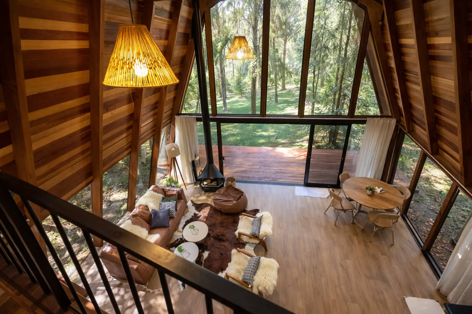 That was when the thought of building a cabin in the woods started to take shape. It wasn’t about going completely off the grid or disappearing from the world. It was about creating a space that felt intentional — something small, but thoughtfully designed. The result was a striking A-frame home tucked among tall trees, with large glass panels that let the outside in and a warm wooden structure that blends naturally into its surroundings.