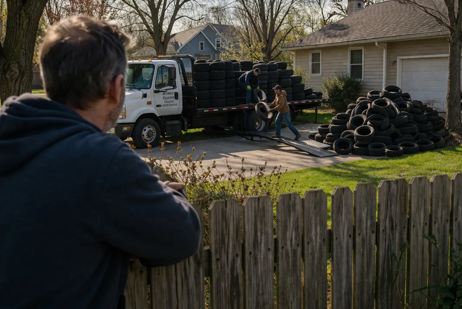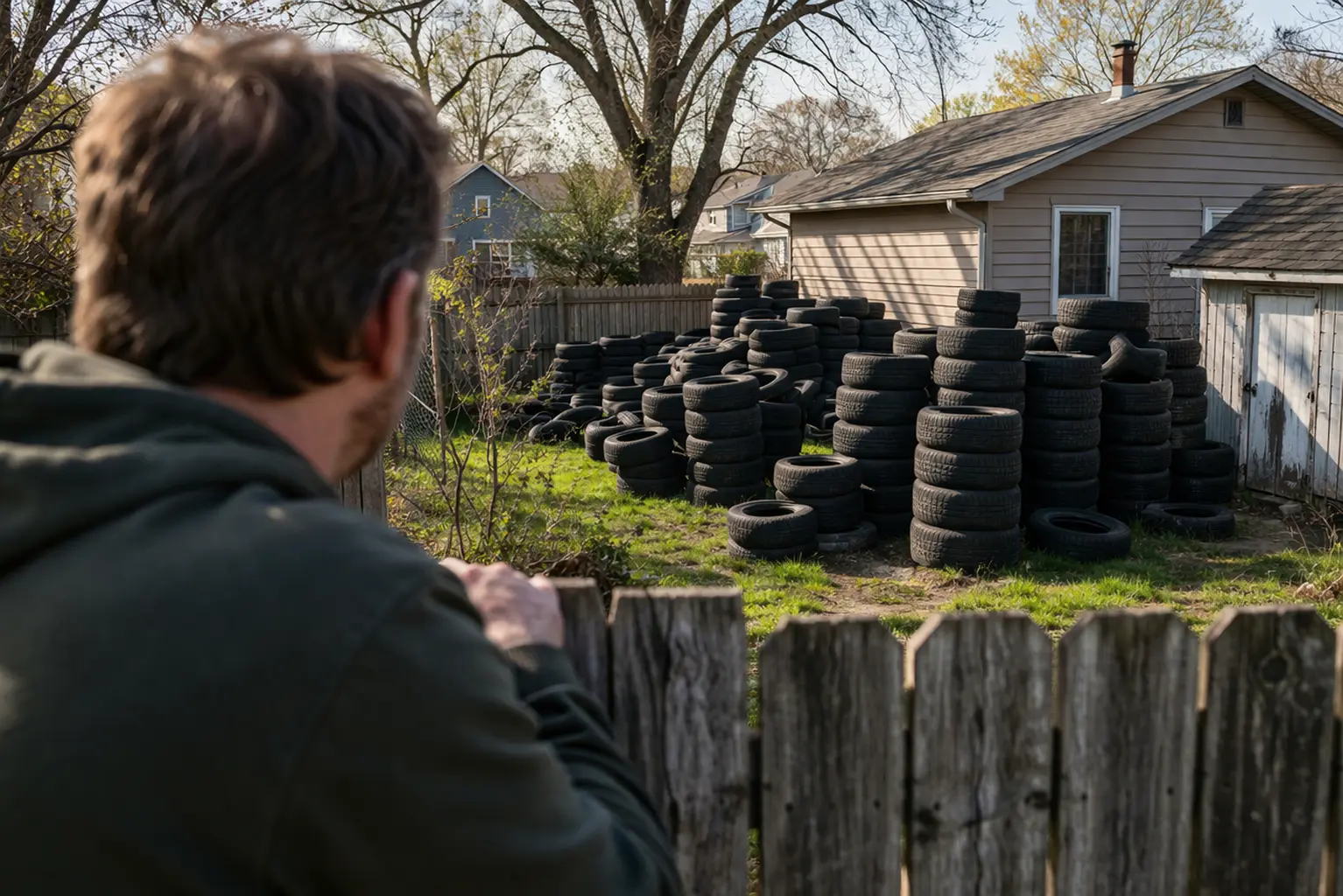 He just didn’t think it meant anything. Not then, anyway. A few tires became a stack. Then another stack. Then another. By the end of the week, Mark had noticed something Darren’s other neighbors hadn’t yet — this didn’t look temporary anymore.
