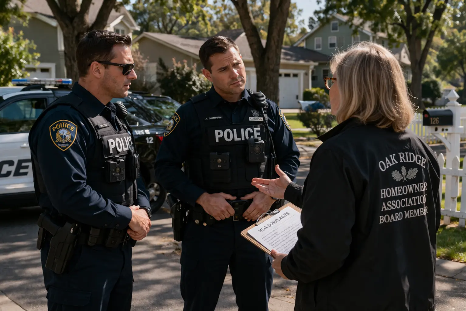 So Mark waited. Along with two HOA representatives and more than one curious neighbor pretending not to watch, he stood nearby as the police arrived and went into Darren’s backyard. For a few minutes, nobody said much. Everyone just waited. Then the officers came back out.