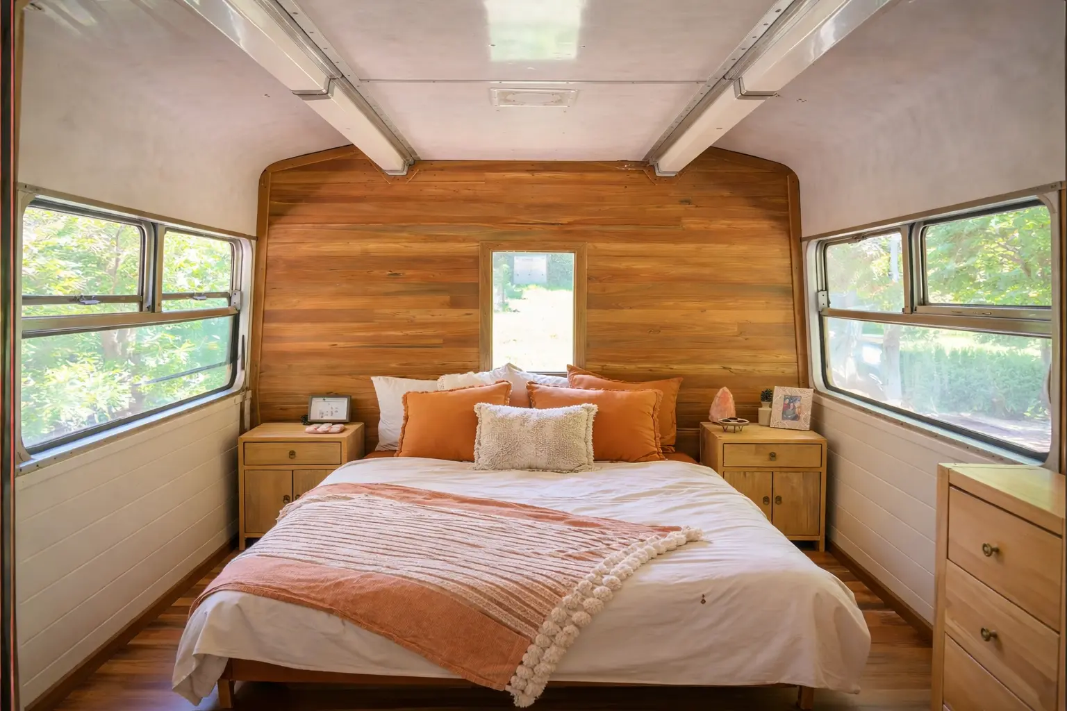 So instead of signing another lease, Mila took a chance on the old carriage and began turning it into a home. She kept the narrow shape instead of fighting it, letting the train itself decide the flow of the space. Where others saw limitations, she saw charm: long sightlines, old doors, original details, and the delicious challenge of making every corner count. She leaned into the romance of it all, filling the home with soft lighting, warm wood, thrifted pieces, and small signs that someone young and imaginative lived there.