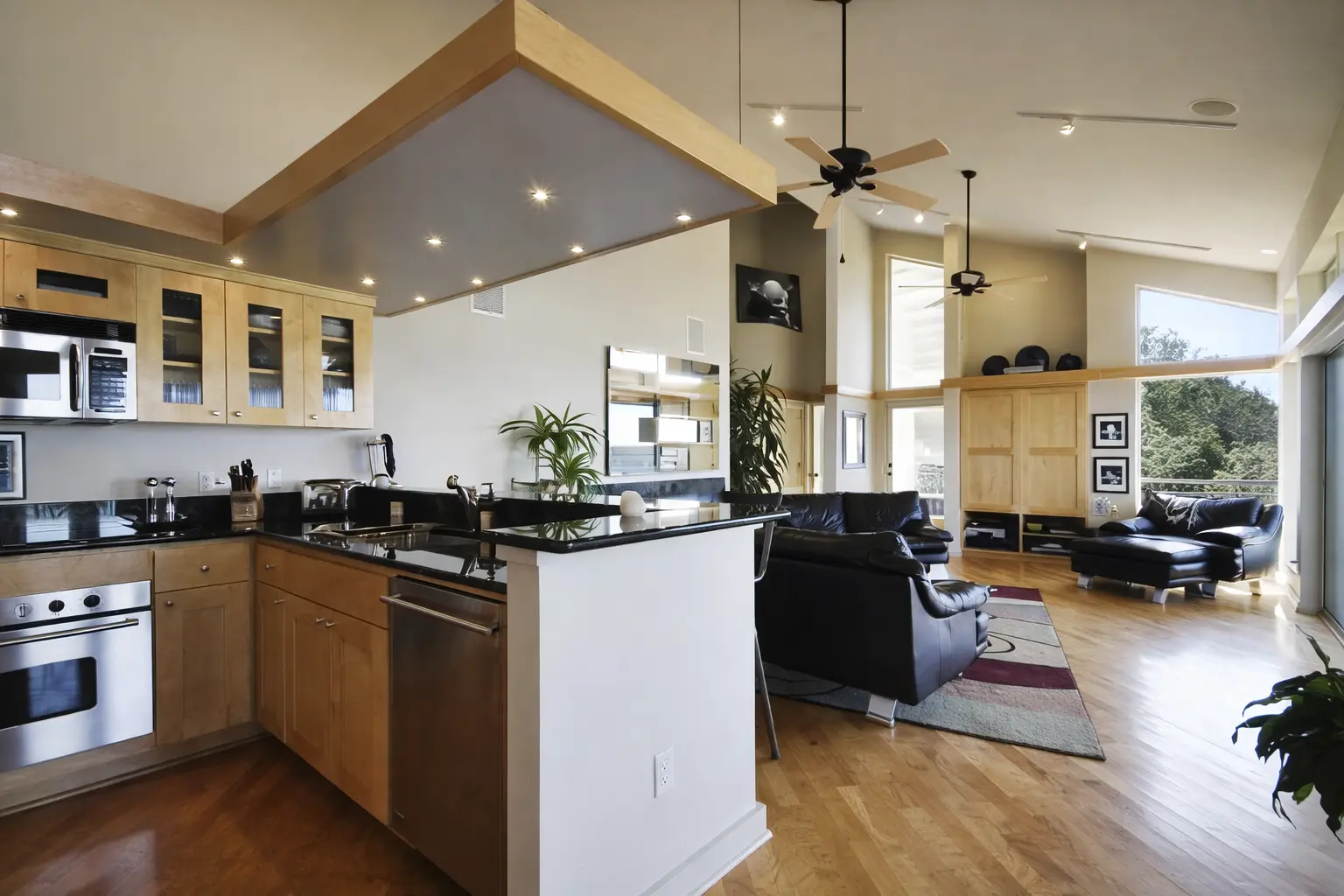 The interior details help push that feeling further. The home has corner windows, skylights, and a spiral staircase, plus a layout spread across multiple levels. Those features make the space sound airy and playful rather than stiff or overly polished. You can imagine sunlight moving through the house in a way that keeps it changing all day long. One corner might feel bright and open in the morning, while another becomes cozy and golden by late afternoon. That kind of atmosphere is hard to fake. It comes from architecture that actually interacts with its setting instead of shutting it out.
