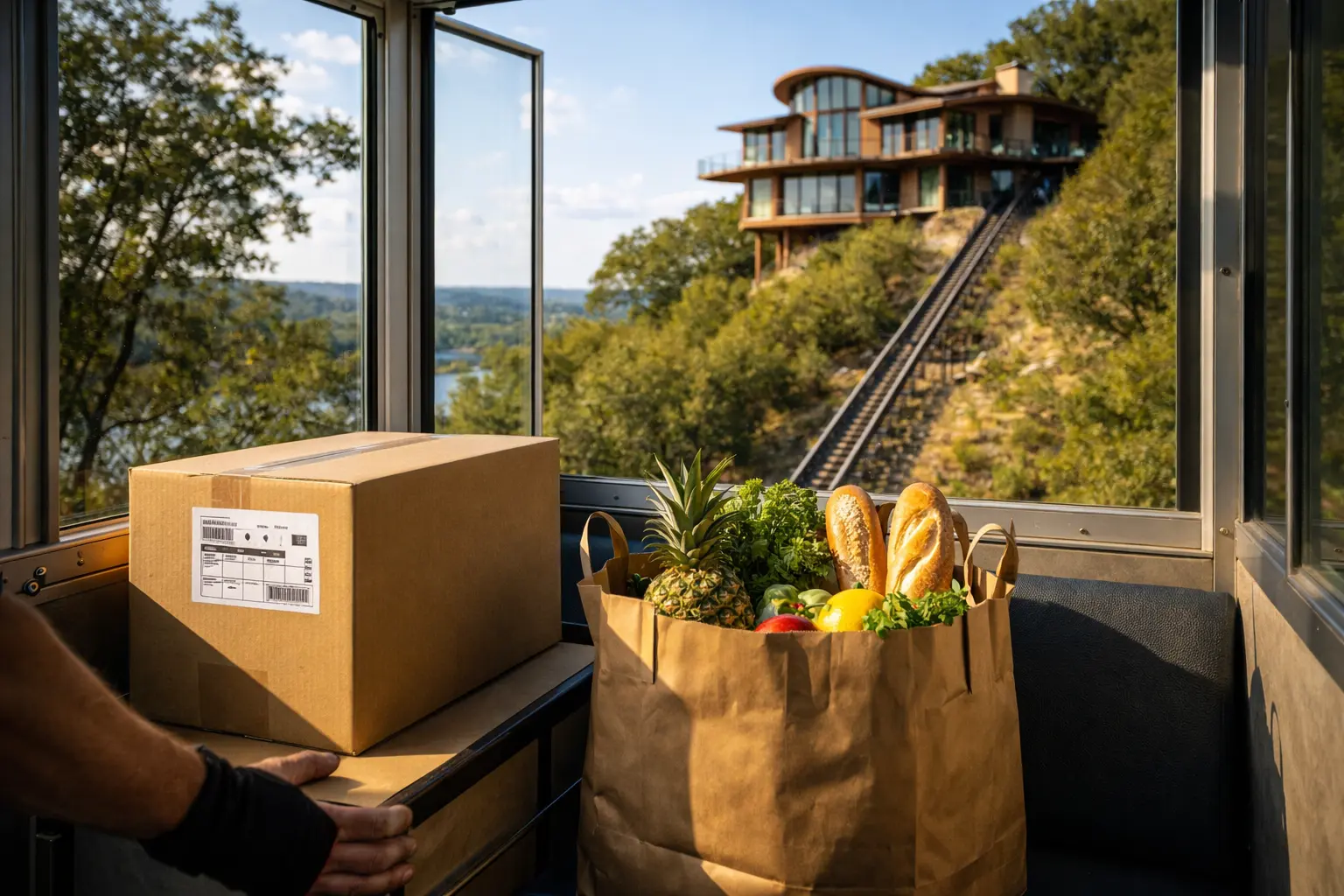 The ride is not just scenic. It also changes the mood of the house. Because you have to approach it differently, the place feels more tucked away, more personal, and a little more magical than a standard home would. Even groceries become part of the story. The tram can carry several people at once and makes hauling bags up easier than dragging them through hallways or up flights of stairs. What seems like the weirdest part of the home can also become one of the most practical.