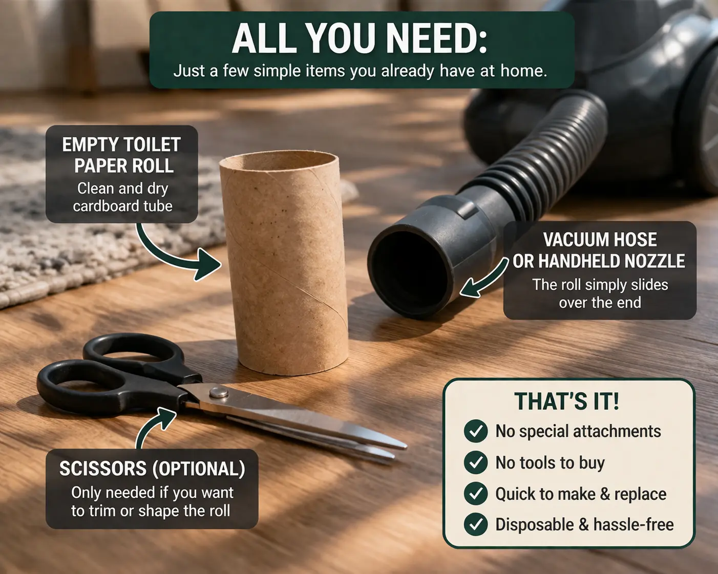 And that’s exactly where this unexpected little trick comes in. Instead of reaching for a different attachment, some people have started using something most households throw away without thinking twice — an empty toilet paper roll. At first glance, it doesn’t make much sense. It’s just cardboard. It’s flimsy. It’s not designed for cleaning anything. And yet, more and more people swear by it when it comes to those hard-to-reach spots. Not because it replaces a vacuum.