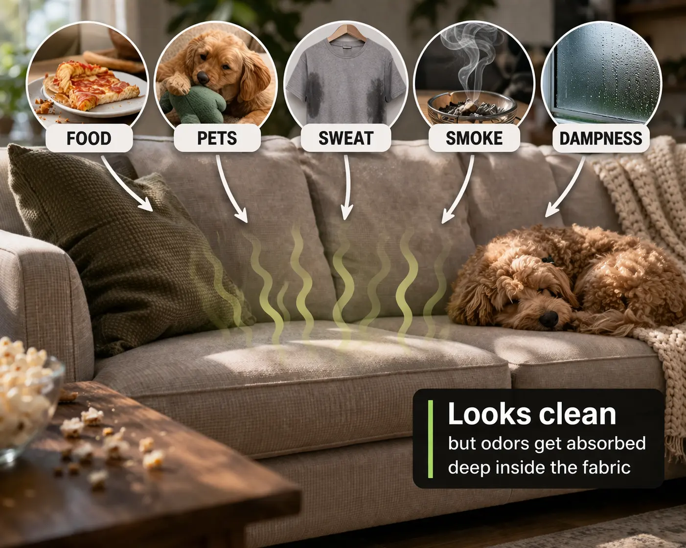 One of the biggest frustrations with upholstery is that it doesn’t always smell the way it looks. A couch can appear spotless and still carry old odors from food, pets, sweat, smoke, dampness, or just everyday use. And because fabric tends to absorb and hold onto smells, regular surface cleaning doesn’t always do much to fix the problem underneath. That’s where a lot of people make the same mistake.