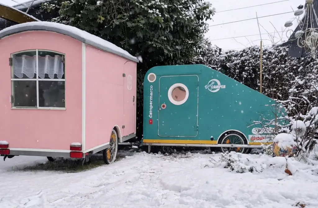 As charming as the project looks in Marco’s videos, the experience turned out to be less magical for everyone in his household. His wife Claudia, shares his love of the outdoors and even helped him build a second version of the mini-camper, painted pink, especially for her. On paper, it sounded like a fun way for the couple to enjoy nature together. In reality, however, the tiny dimensions quickly proved to be too much for her.