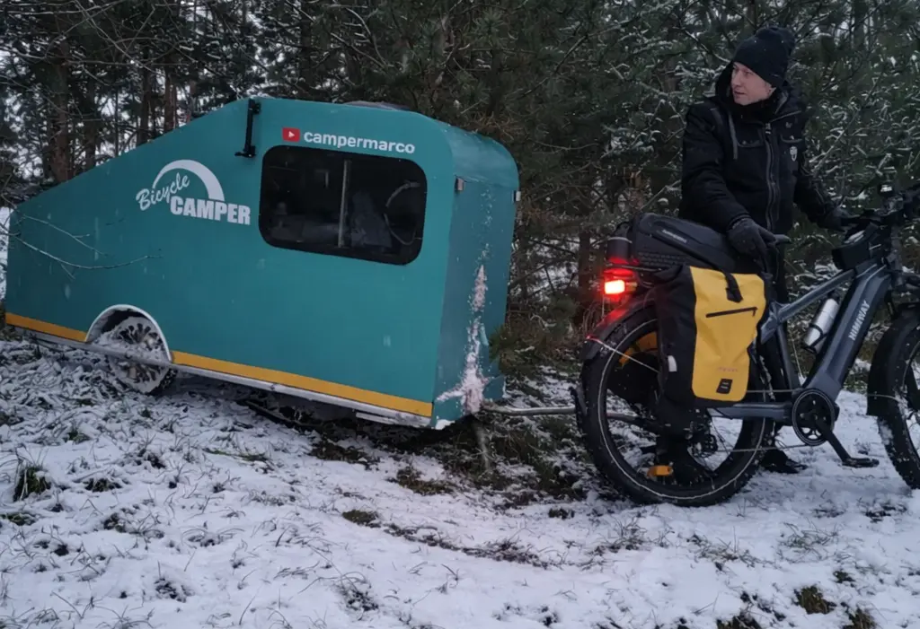 Man Builds a 300-Euro Mini-Caravan to Tow Behind His Electric Bike