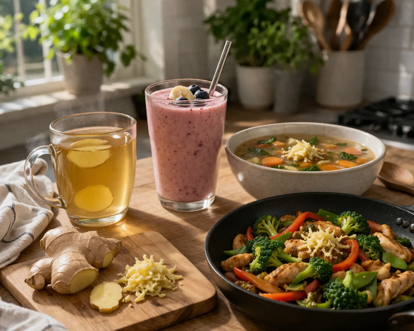 The good news is that trying this doesn’t have to be complicated. You don’t need to chew on a huge chunk of raw ginger every morning. For most people, a small amount is enough — roughly a thumb-sized slice or a little grated ginger added to something you already eat or drink. The easiest ways to use it are: