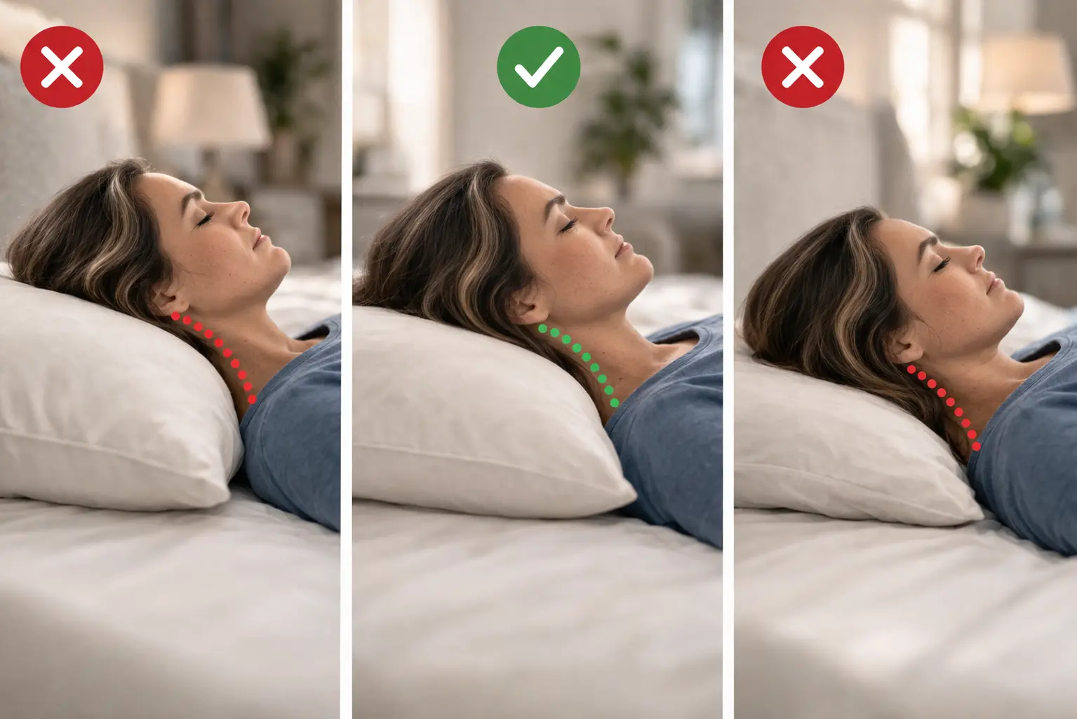 In a lot of cases, the real issue is the pillow. Not just whether you use one — but whether it’s actually supporting your neck the way it should. A pillow that’s too high can push your neck into an awkward angle for hours. One that’s too flat, too soft, or worn out may let your head sink without enough support. Either way, your neck can end up spending the whole night slightly out of alignment — and that strain tends to show up by morning.