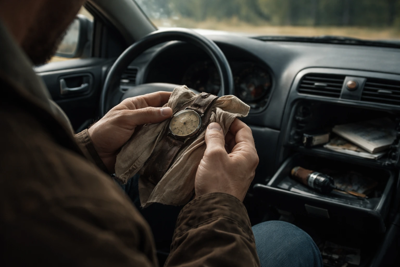 He did not open the pouch immediately. For ten more minutes, it sat on the passenger seat while he drove, as if ignoring it might return the day to normal. But curiosity is stubborn when it has actual weight. At the next rest stop, Daniel parked under a line of bare trees, switched off the engine, and finally unzipped it. Inside was a wristwatch wrapped in a faded microfiber cloth. At first glance it looked old rather than impressive. The crystal was scratched. The leather strap had been replaced at some point with a generic brown one. There was no shine, no dramatic sparkle, nothing that screamed money.