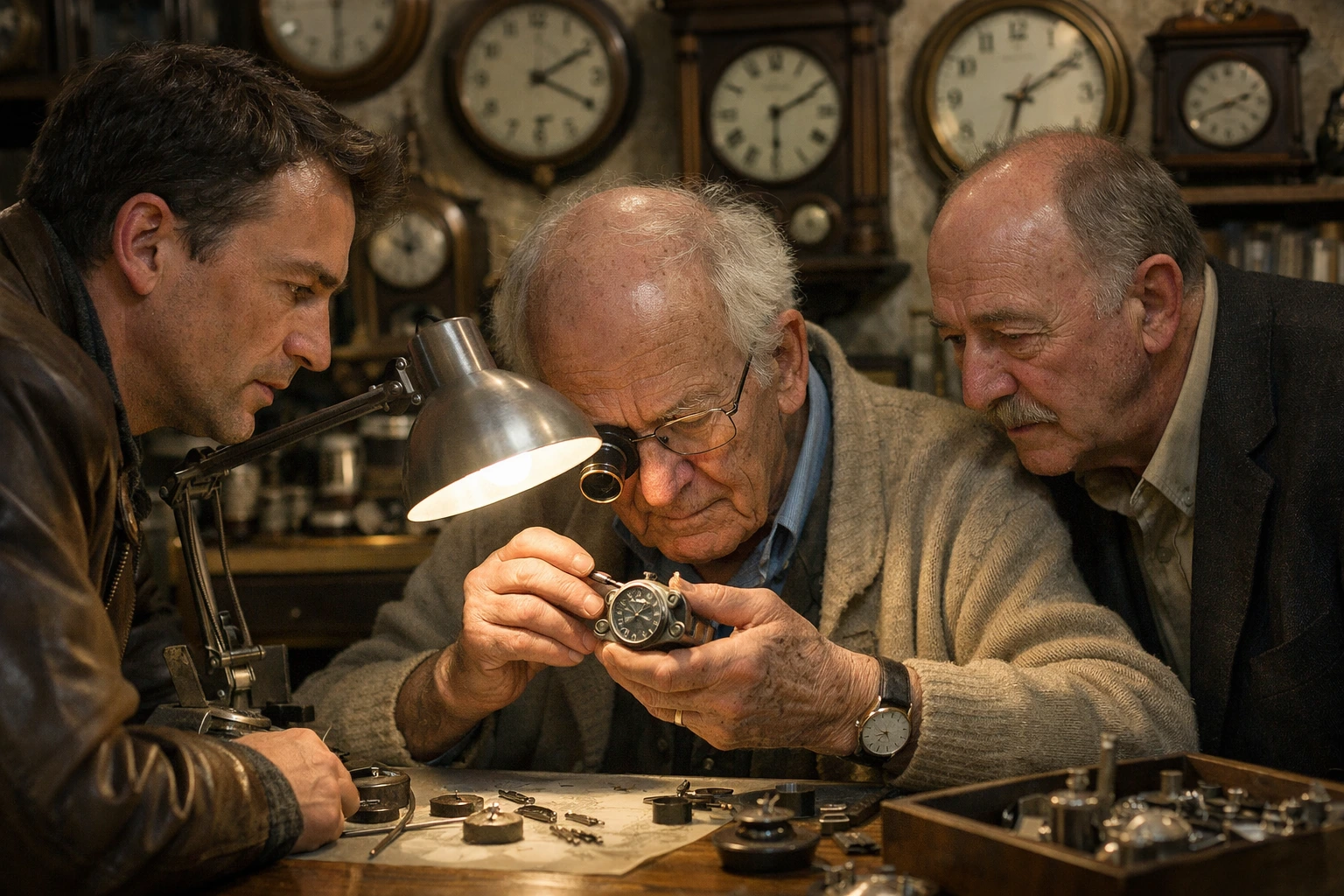 The specialist’s shop was narrower than Daniel expected, with old clocks ticking from every wall and a workbench lit by a single bright lamp. The horologist, a man in his late sixties with steady hands and magnifying loupes lined up like surgical tools, barely spoke for the first five minutes. He examined the dial, removed the strap, checked the reference and serial between the lugs, and opened the case with such calm precision that even Frank stopped fidgeting. Then he leaned back and let out a slow breath that seemed to change the temperature in the room.