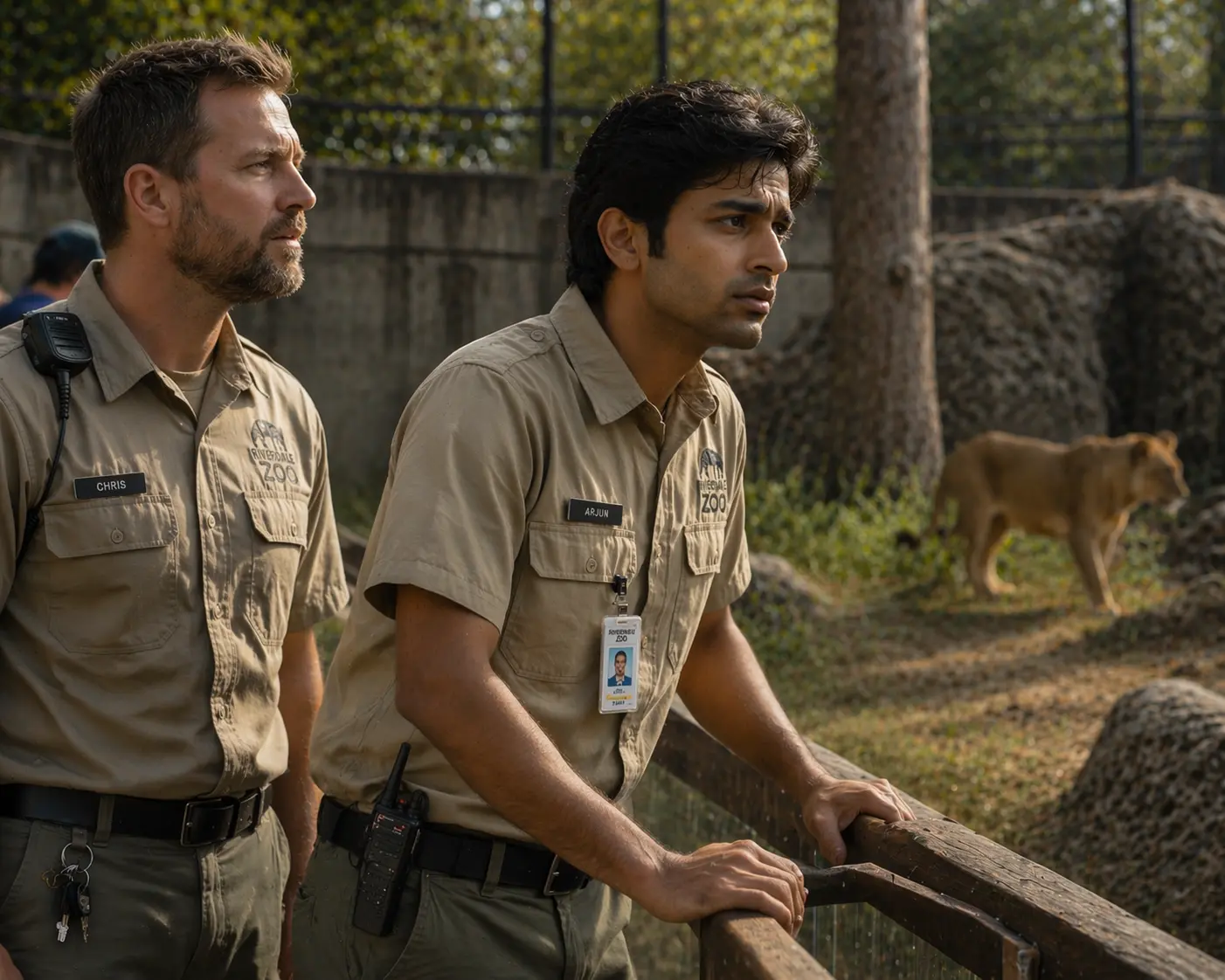 Arjun reached the barrier and stopped. The enclosure stretched out below. Wide. Open. Unforgiving. The lion enclosure. Near the base of a tree, something small shifted. Milo. Alive. But not alone.