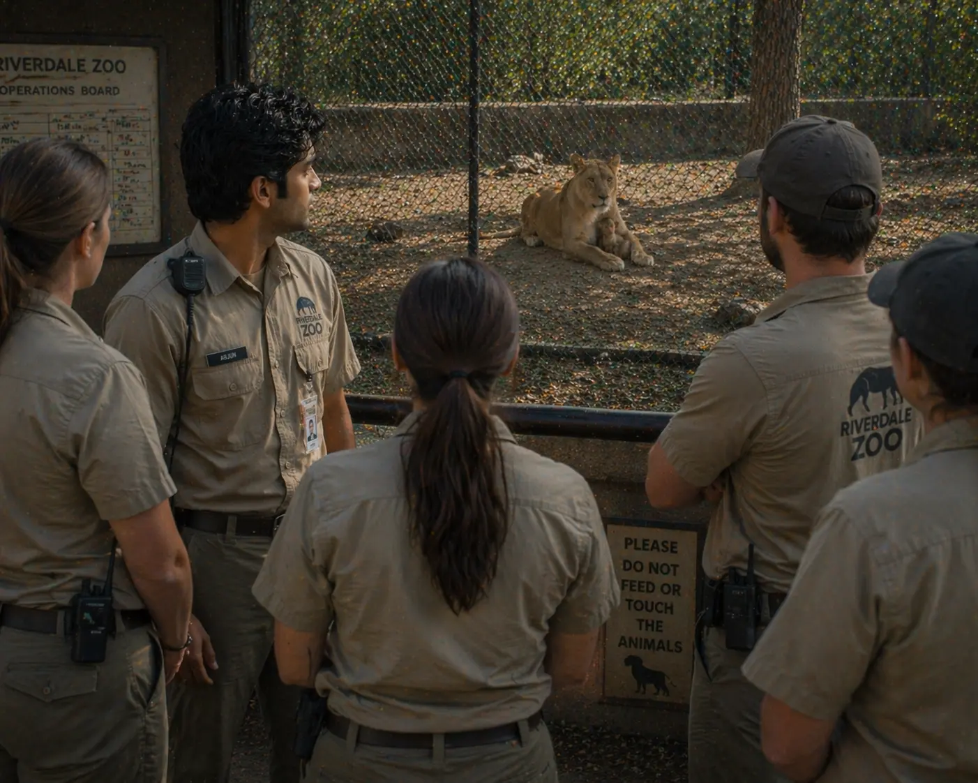 “Clear the area!” “Get the vet team—now!” Arjun barely heard any of it. His focus narrowed to a single point. Distance. Timing. Options. None of them were good. Inside the enclosure, the space between them shrank. Step by step. The lioness lowered her head slightly, muscles shifting beneath her skin.