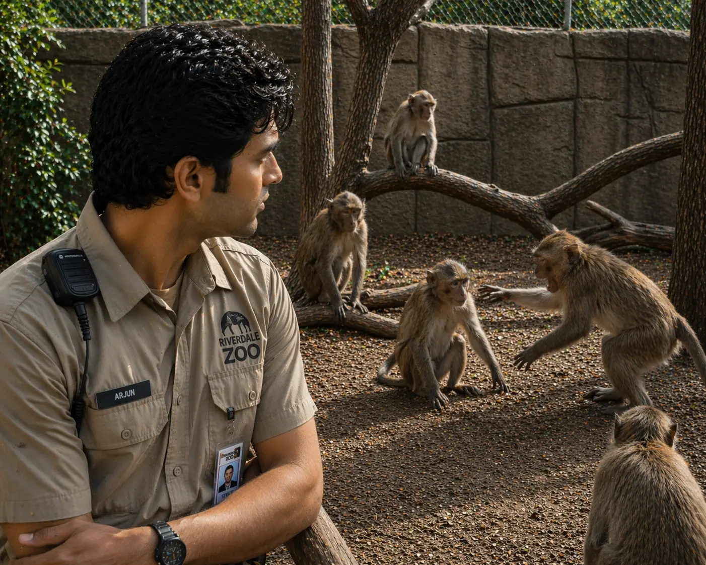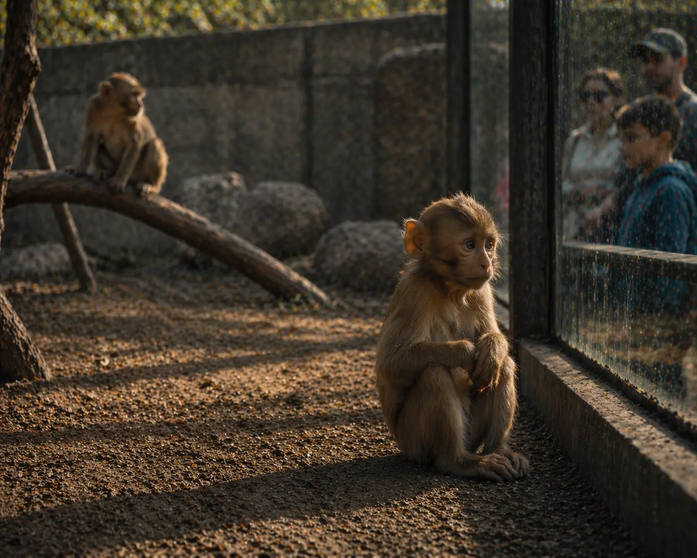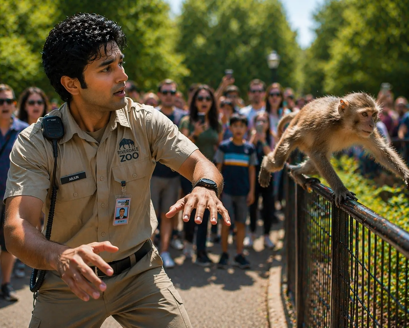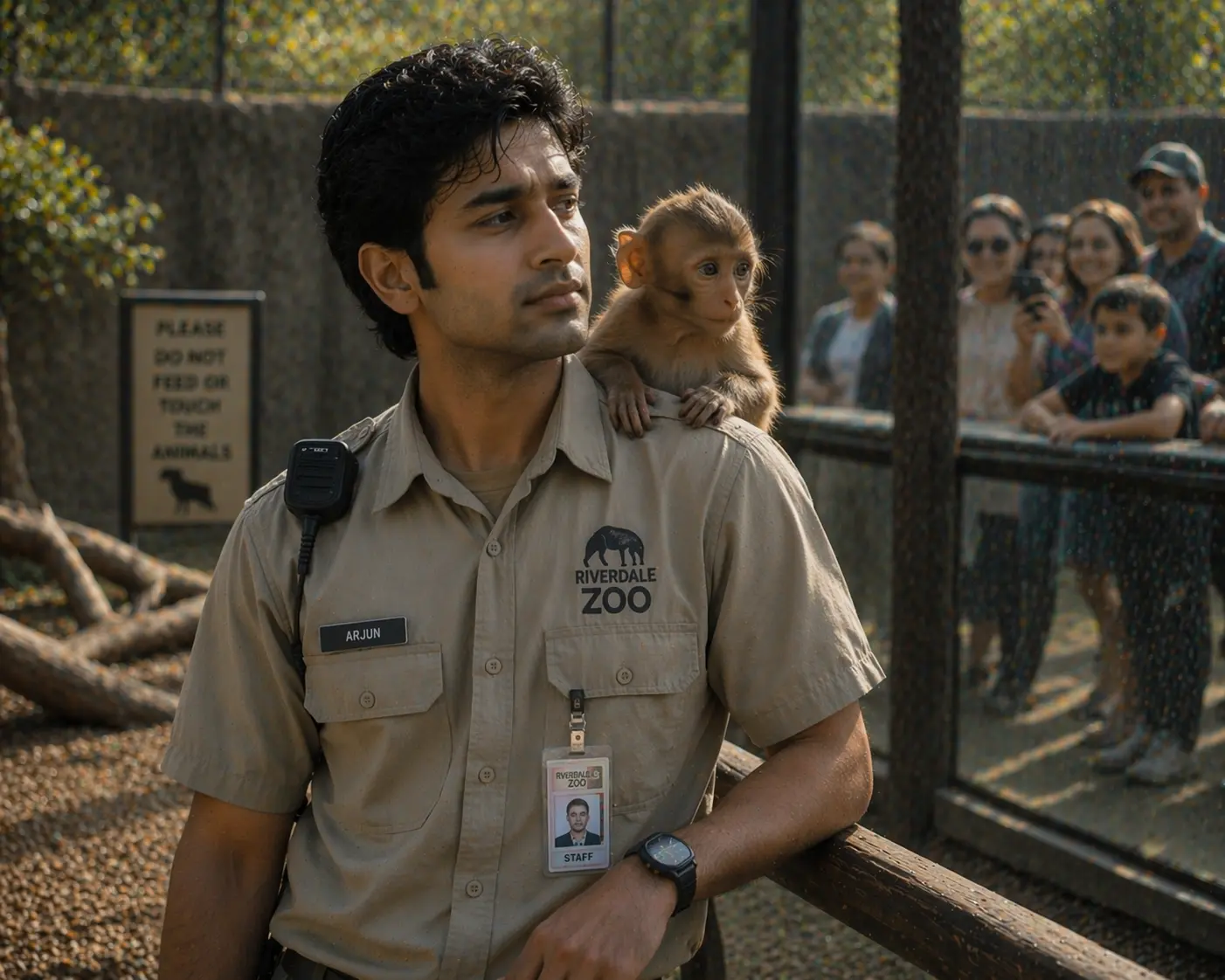 It started quietly. Milo began waiting near the feeding gate every morning, long before the others drifted over. Not for food. For him. Arjun noticed it before anyone else did. The small monkey would sit there, still and patient, watching the entrance with an intensity that didn’t match the usual restless energy of the enclosure.