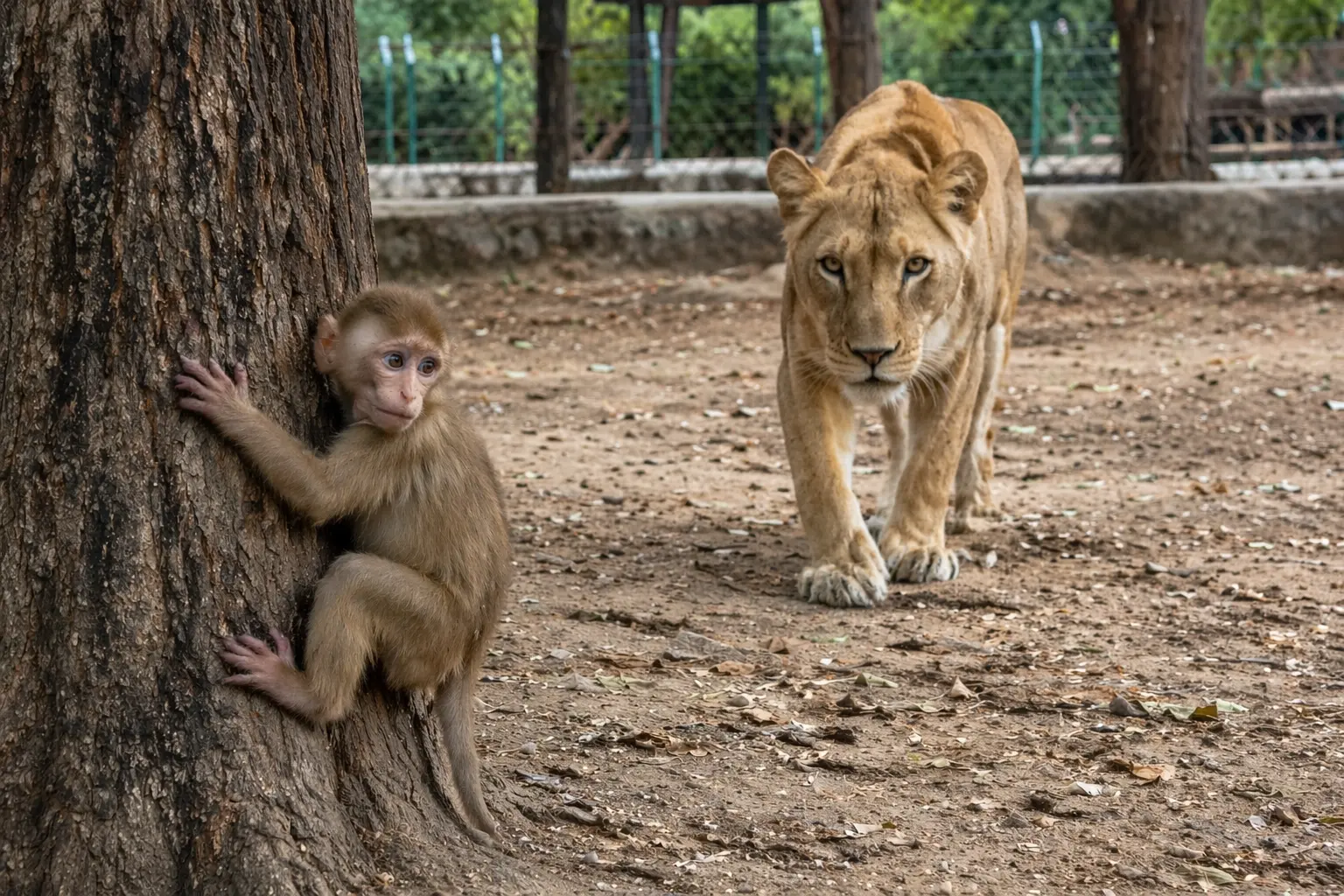 This Baby Monkey Fell Into a Lion Enclosure—What Happened Next Had Everyone Holding Their Breath