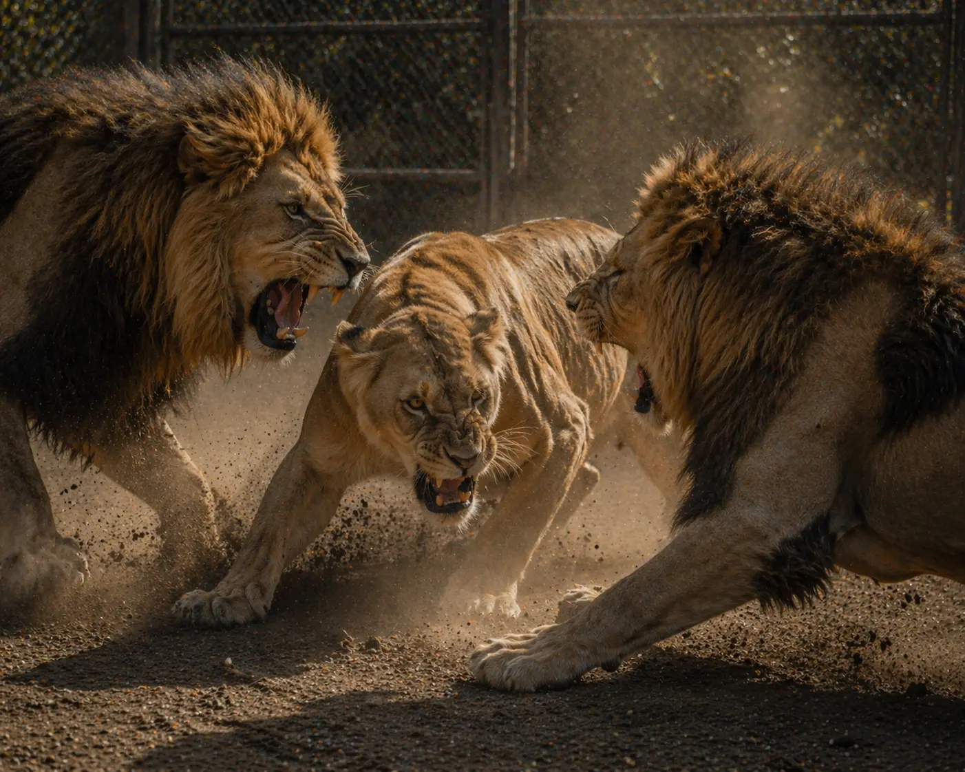 It happened all at once. A sudden burst of movement; dust rising, claws tearing into earth and a roar that ripped through the enclosure. Milo screamed. High. Sharp. Terrified. Then… Silence. For half a heartbeat. Before chaos exploded again. Other lions surged forward, drawn by the sound. Bodies collided. Growls overlapped, deep and violent, shaking the air itself.